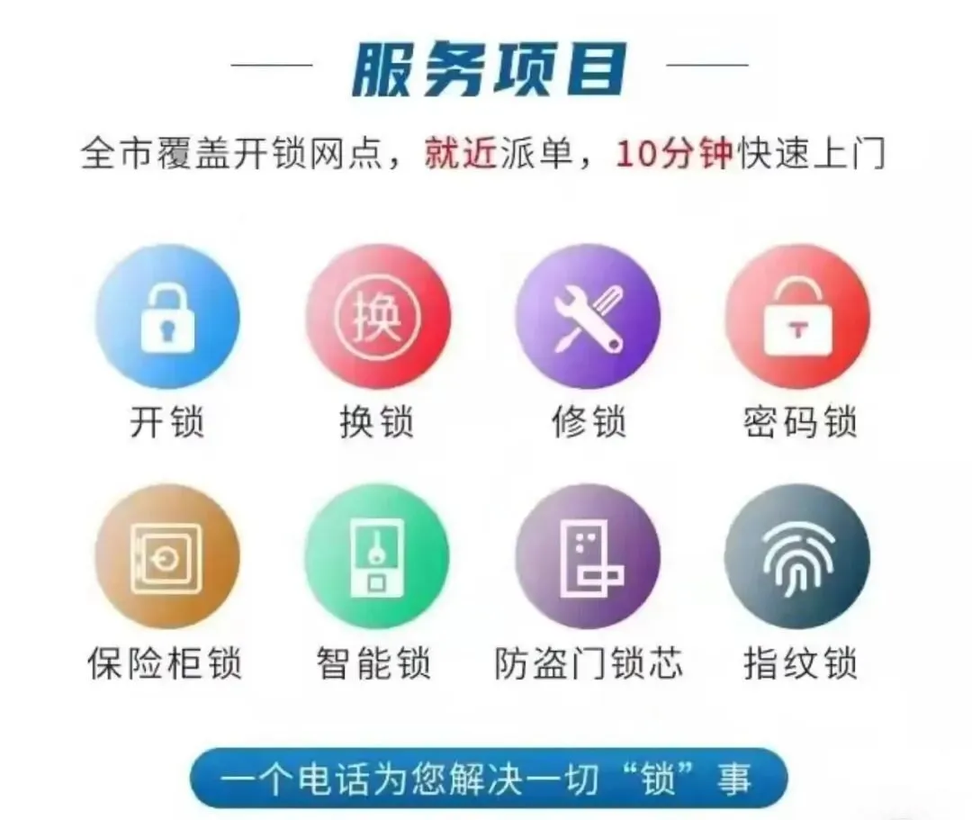 🔧【服务内容】✔️ 家用门锁开启(防盗门、木门、卧室门等)✔️ 汽车开锁(各类车型无损开启)🚗✔️ 指纹锁/密码锁维修与安装 🔐✔️ 换锁芯、升级防盗锁具✔️ 保险柜开启与维修 💼✔️ 门禁系统安装与维护✔️ 开锁备案正规操作,安全可靠