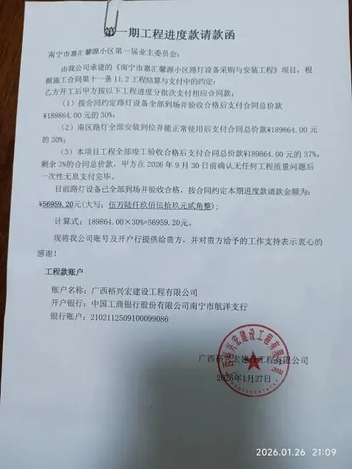 (五)2026年1月6日,和路灯设备采购与安装工程项目中标方签订施工合同。