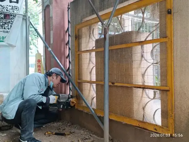 (一)2026年1月3日,配合物业公司电工安装北区17岗电动门禁开关防护网,杜绝送餐等外来人员随意伸手进来开门。