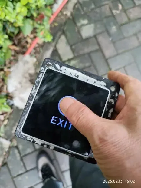 (二)2026年2月13日,巡视发现南区大门岗人行门触摸门禁开关失效(面板裂),通知物业电工立即处理好(指示灯显示绿色)。