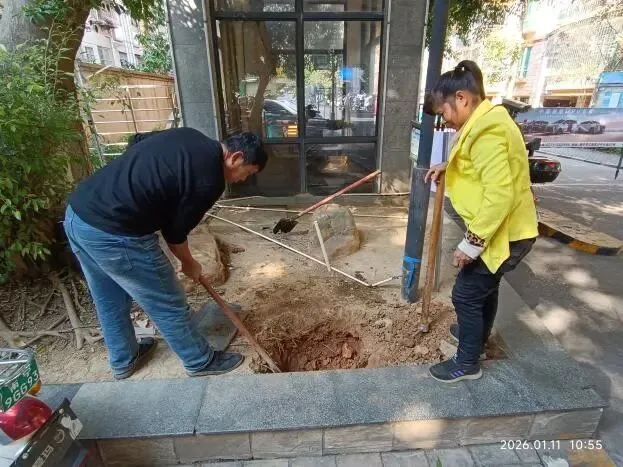 (四)2026年1月21日,跟进物业整改18号楼1单元和2单元花圃砌砖围边工作。