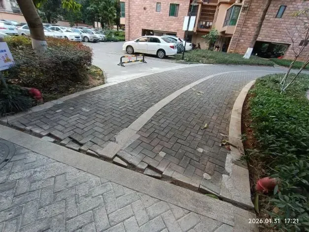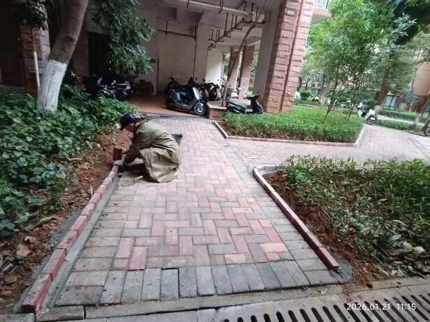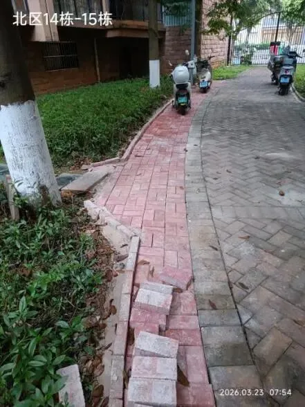 (七)2026年3月20日,北区14号楼与15号楼之间消防道路围边砌砖,美化环境又拓宽了路面,方便消防车通行。