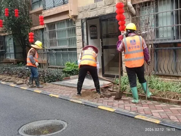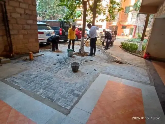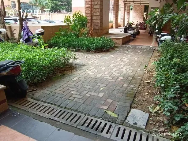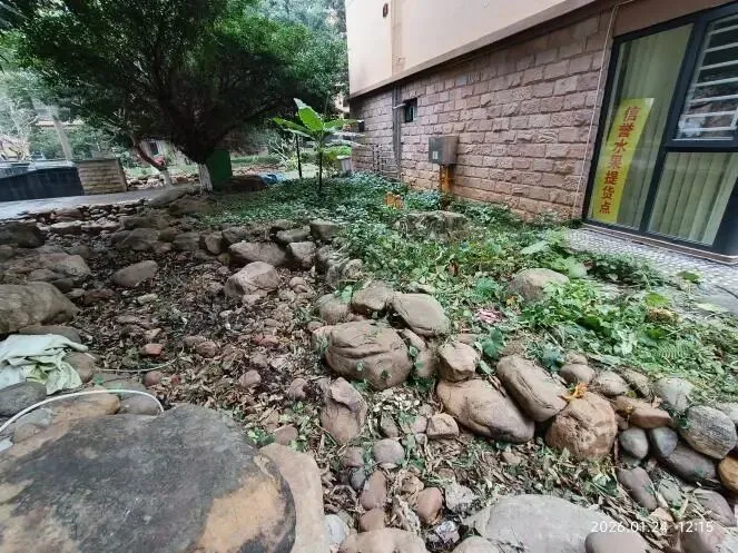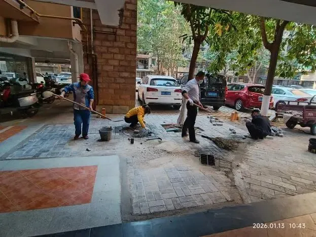 (二)2026年1月12日,跟进物业整改9号楼A座绿地铺砖工作,原来杂草丛生鼠洞遍布的环境,现在变得美观整洁干净明亮。