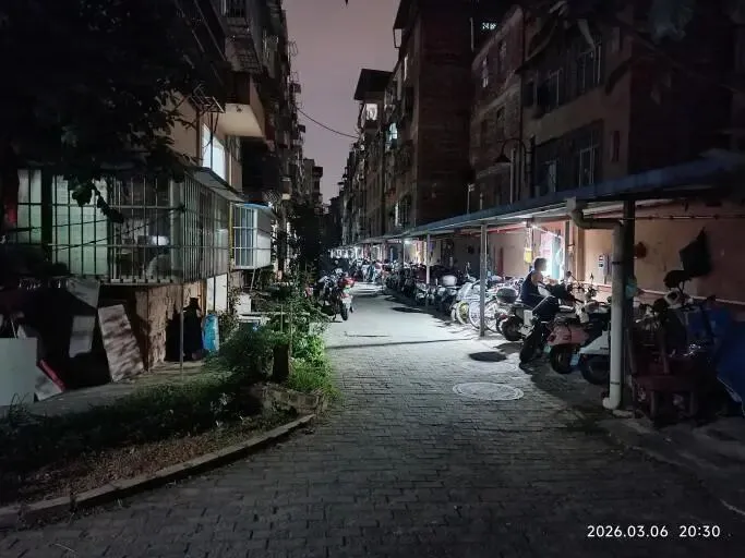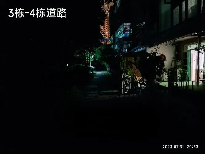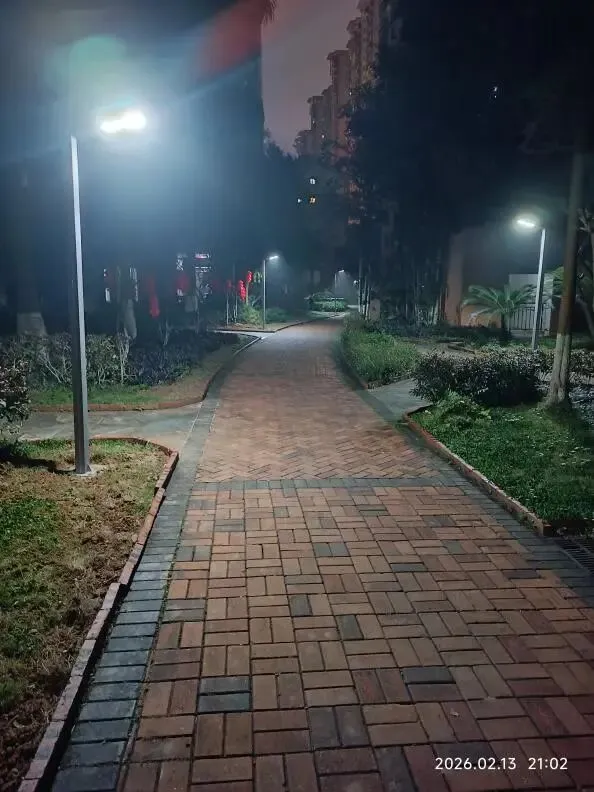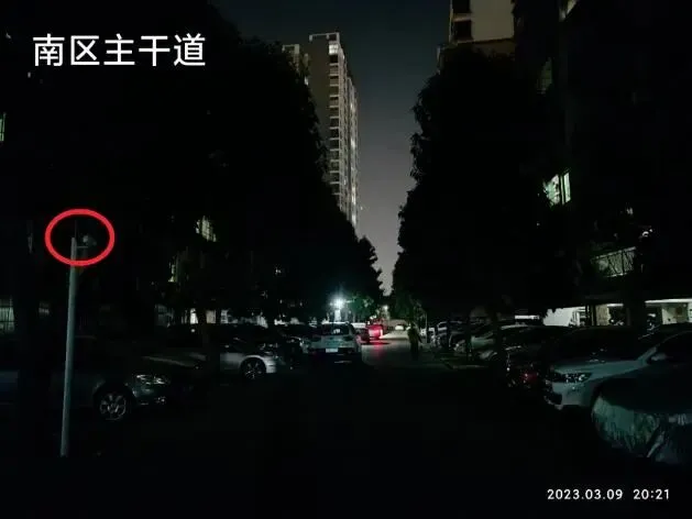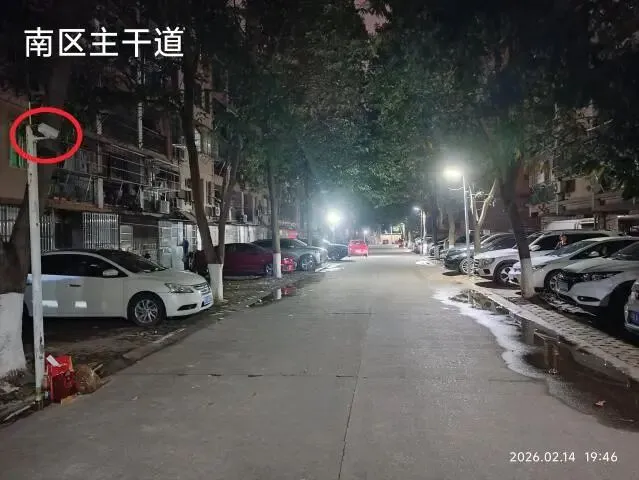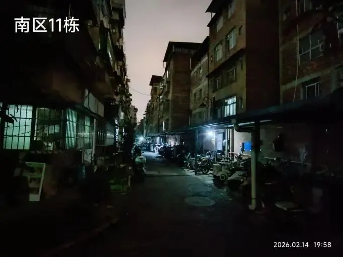(四)2026年2月12日,南区新路灯初步试灯成功,原来比较暗淡的路面变得明亮了起来。以下是新路灯安装前后部分路面照明效果对比。