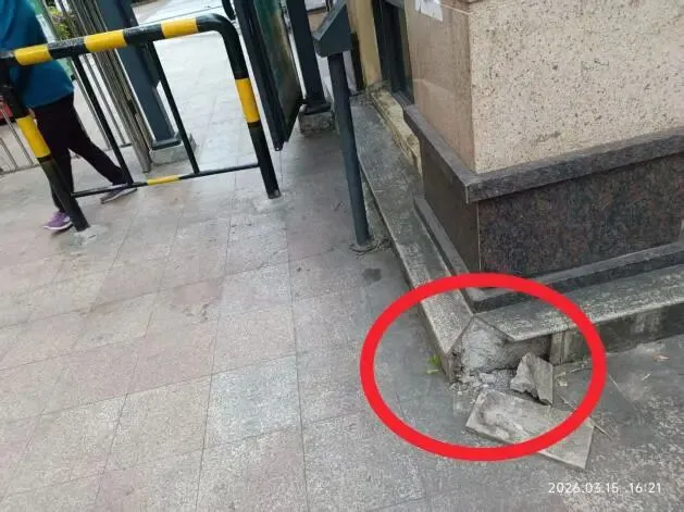 (六)2026年3月15日,巡视发现南区5号岗大理石地角脱落,反馈给物业服务中心修复。