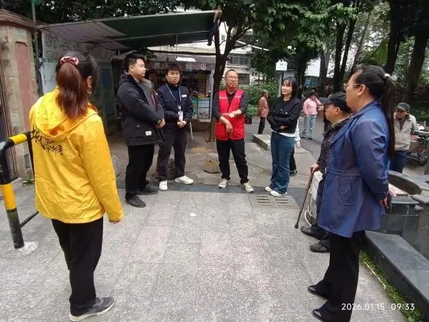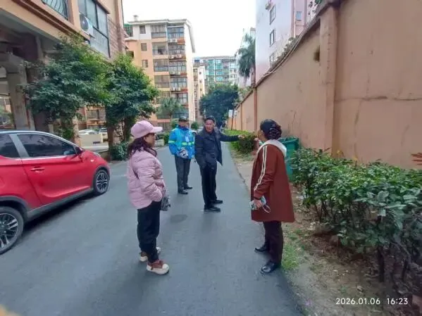 (六)2026年1月6日,业委配合物业与热心业主一起现场落实新路灯安装位置。