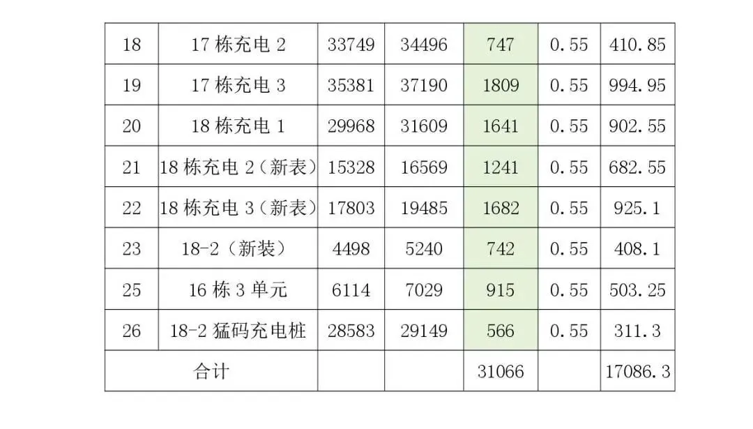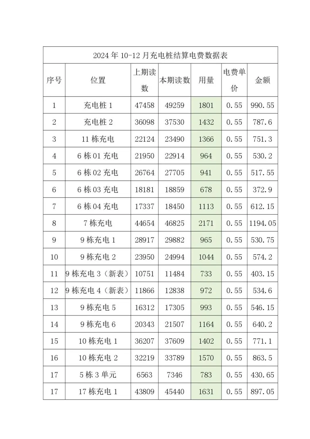 ☆(三)2025年1月13日,核实物业公司提交的关于《充电桩用电结算函》,2024年10月1日至2024年12月31日电动自行车充电桩用电合计31066度,公共收益支出相关费用¥17086.30元。
