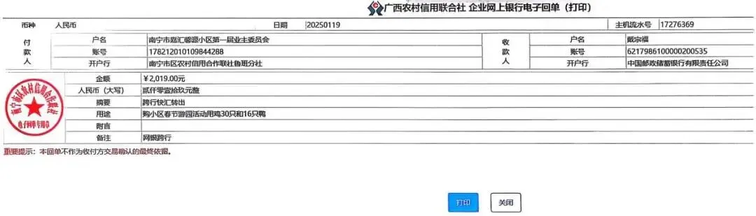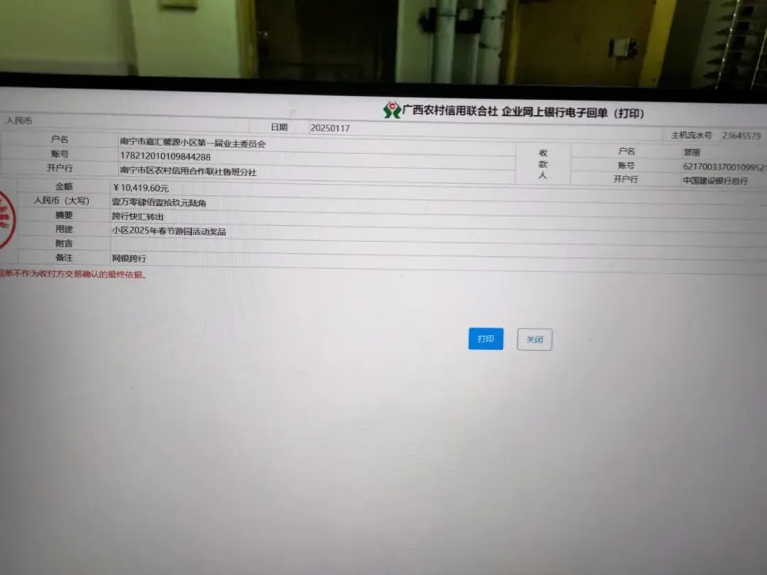 ☆(九)2025年1月17日,转出2025年春节游园活动费用,公共收益支出¥12438.60元