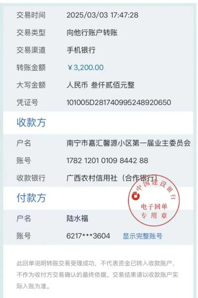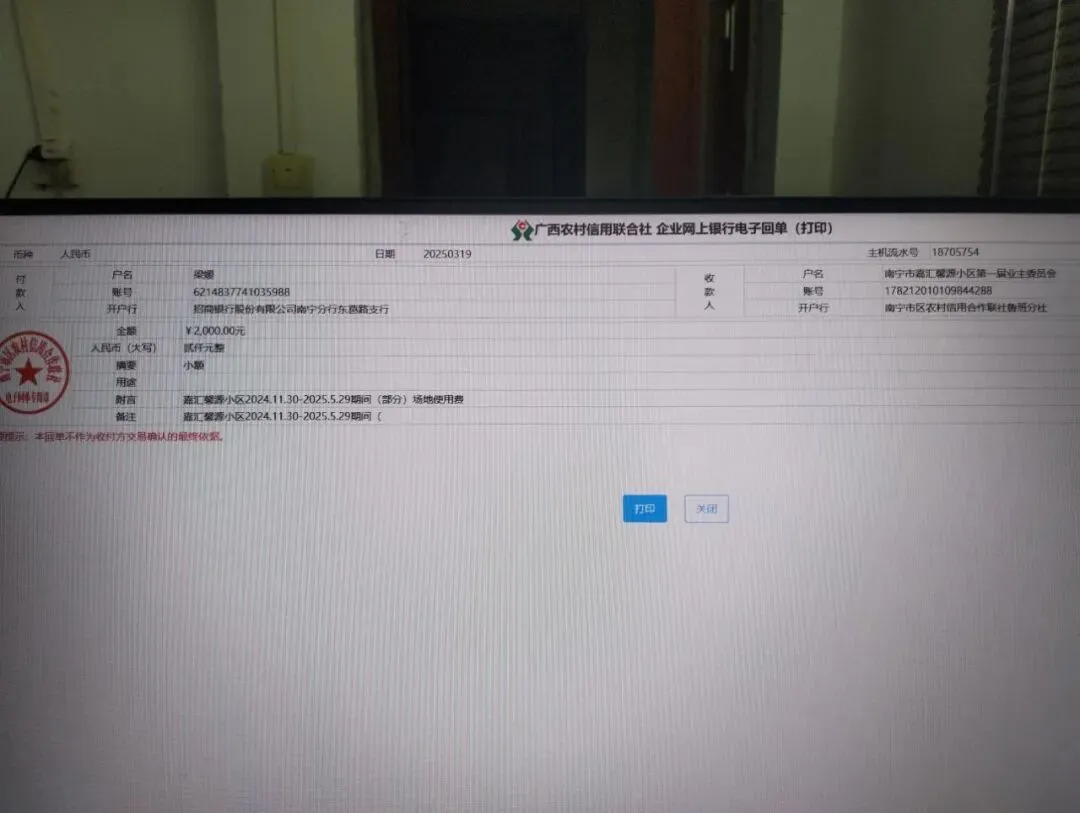 ★(二十)2025年3月3日,确认绿色旧衣回收箱承包商转入2025年度场地占用费,公共收益增收¥3200.00元。