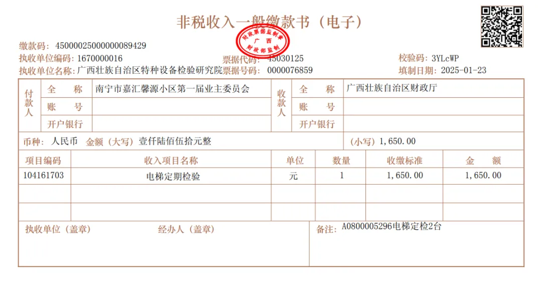 ☆(二十二)2025年3月10日,转出7B和10B电梯年检费用,电梯维修金支出¥1650.00元。