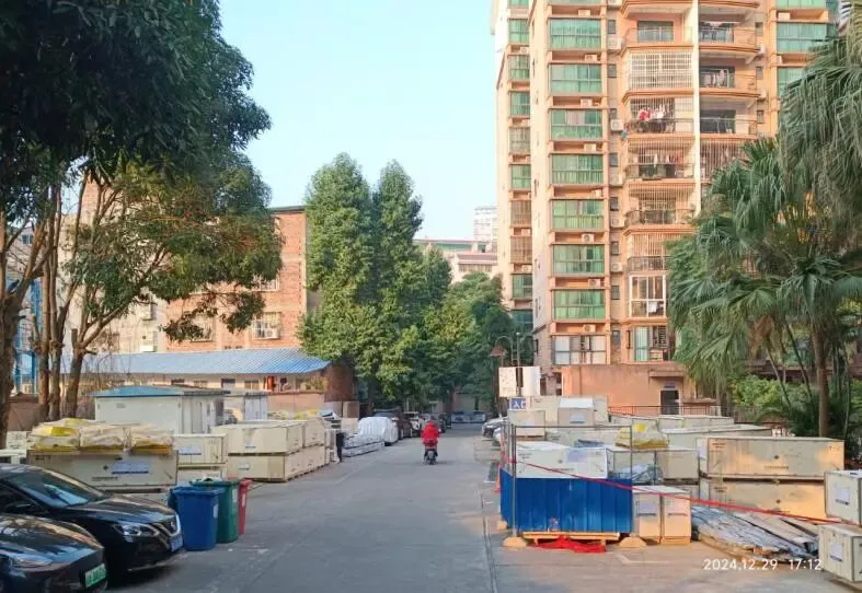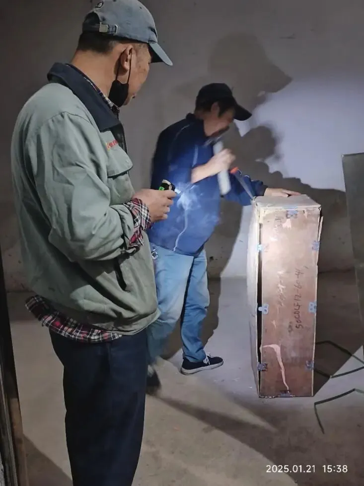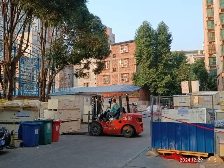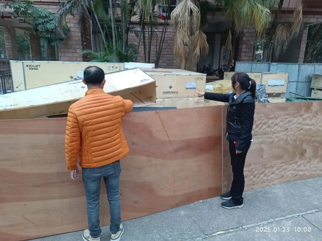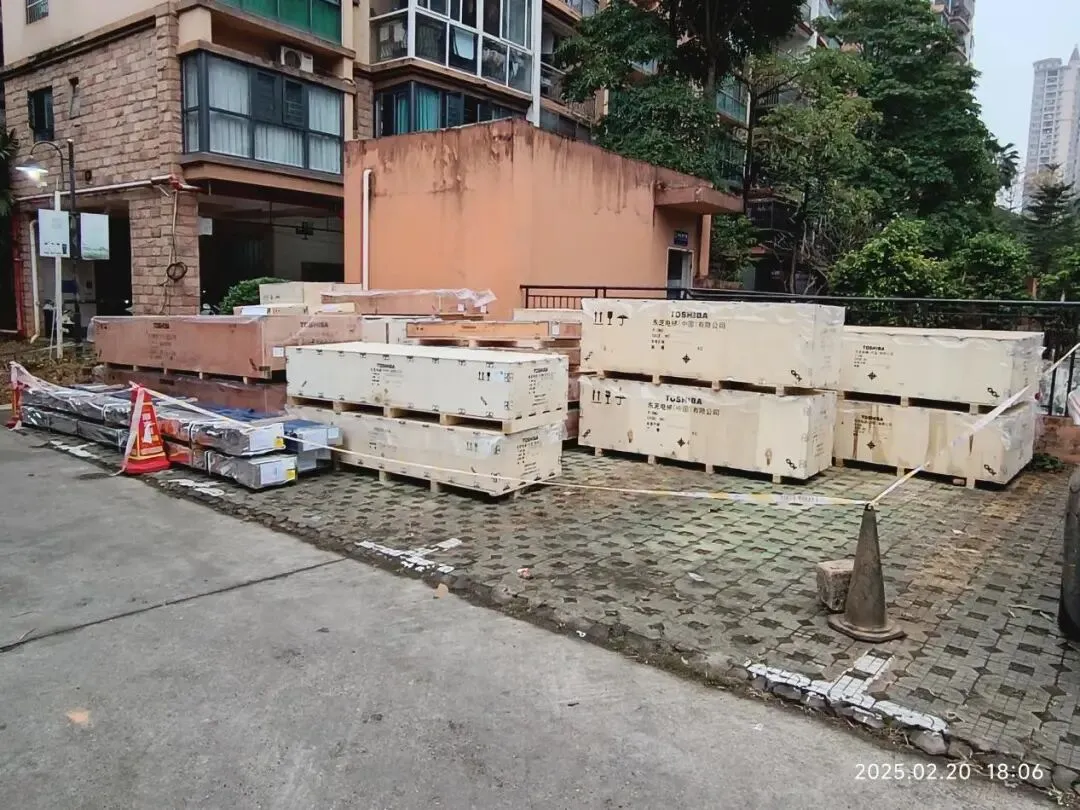 (十六)2025年2月20日,现场跟进协调6号楼新电梯“东芝”设备到货卸车存放事宜。