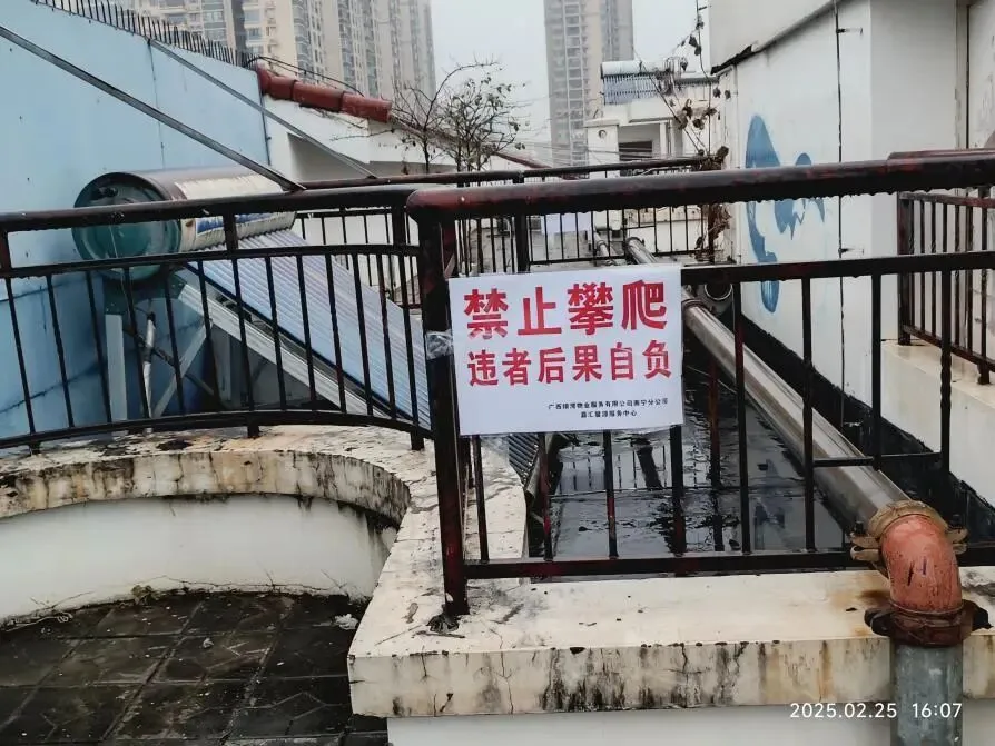 (五)2025年2月25日开始,南区6-1和6-3单元陆续进行拆梯工作,督促物业按拆装计划在楼顶设置安全警示牌。