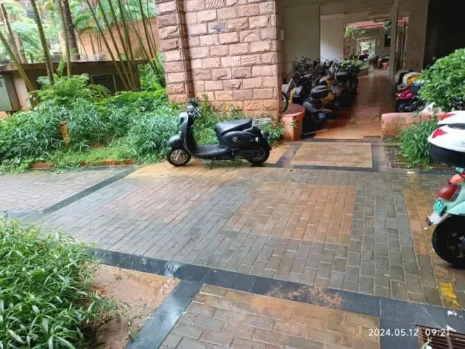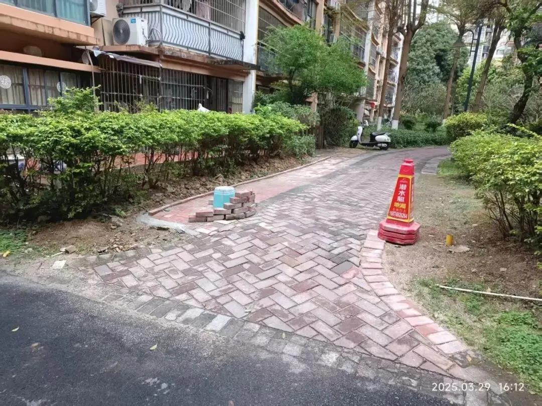 (八)小区路面砖块松动、脱落、损坏、丢失以及坑坑洼洼的现象比较突出,督促物业逐项做好含花圃砌砖围边、增设电动自行车停放点等整改修补工作。