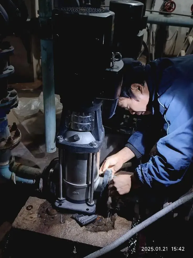(三)2025年1月21日,电梯楼业主反馈家里水压忽大忽小,物业检查发现二次供水加压泵轴承故障,购买新设备后业委跟进更换工作。