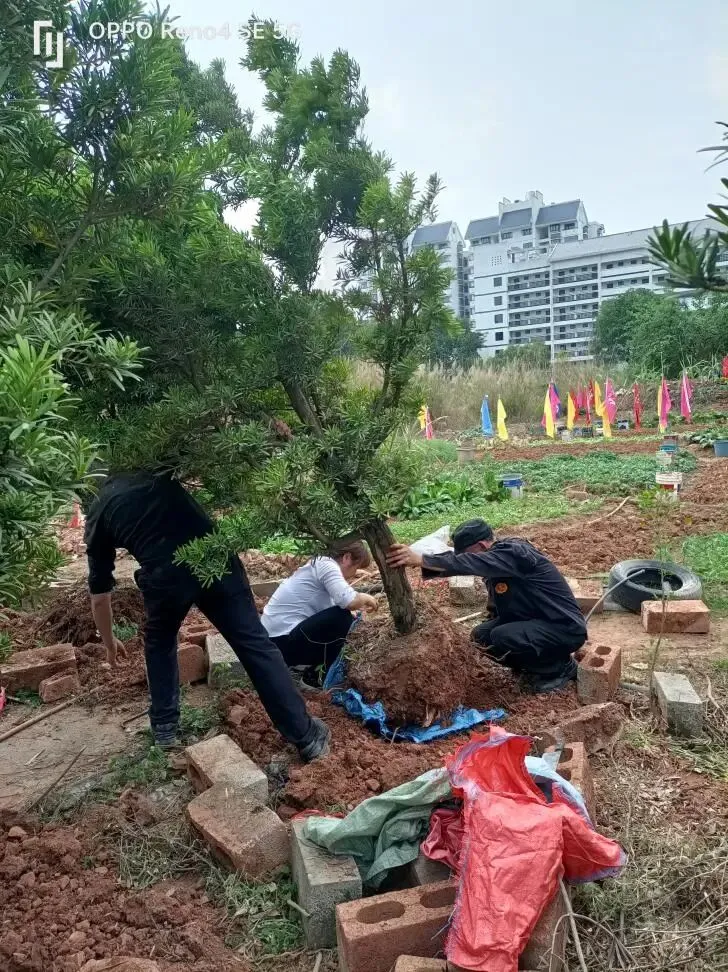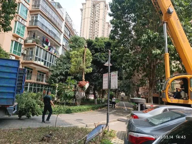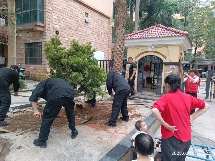 (九)2025年1月21日,在物业的配合协助下完成罗汉松粗苗从开挖、装车和运输,再到卸车以及在小区种植等事宜。