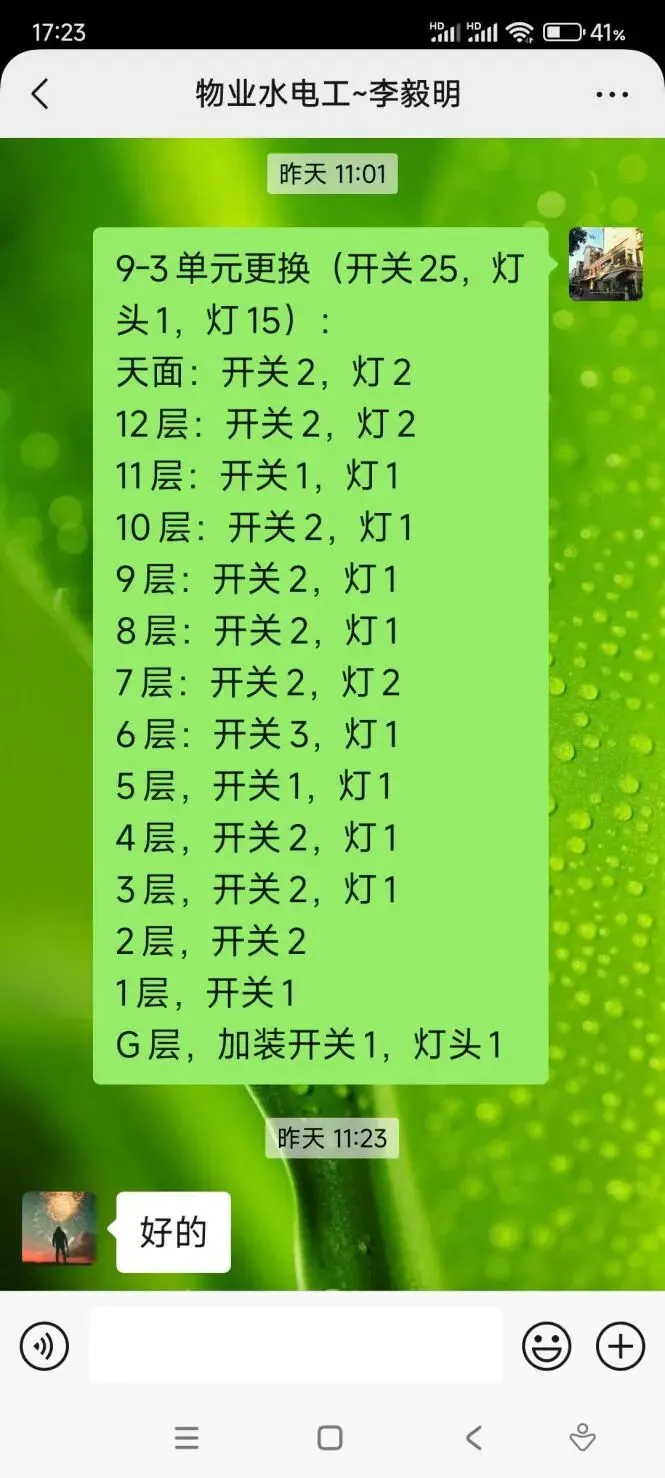 (五)节后进行第二批新电梯拆装工作,业委排查相关单元楼道楼梯照明设备故障情况后督促物业提前更换,确保业主上下楼梯照明正常。
