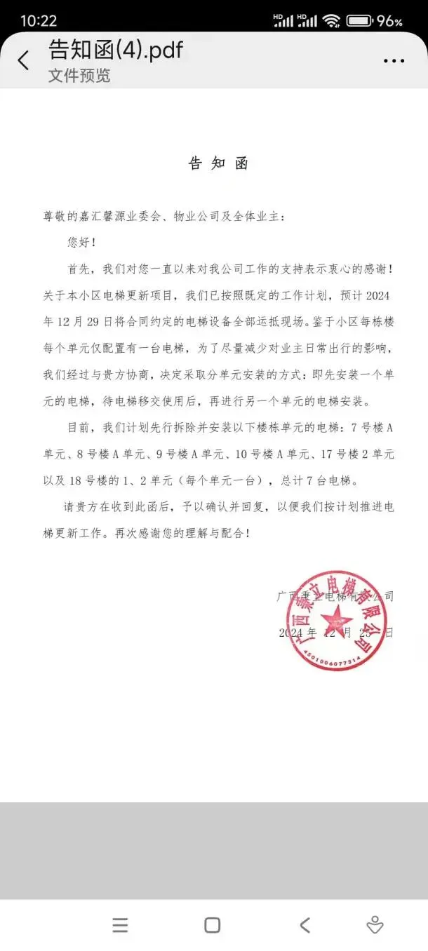 (三)2025年1月1日起,电梯楼由于陆续拆除旧梯,紧急联系电梯广告承包商拆除相关框架广告,并通知96111救援平台处理相关设备。
