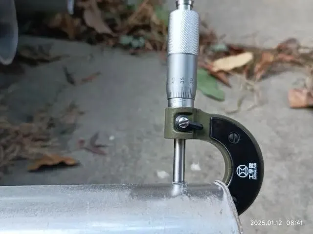 (八)2025年1月12日上午八点,对北区外围停车场拦挡制作进场材料进行抽检,确认材料厚度符合合同要求。