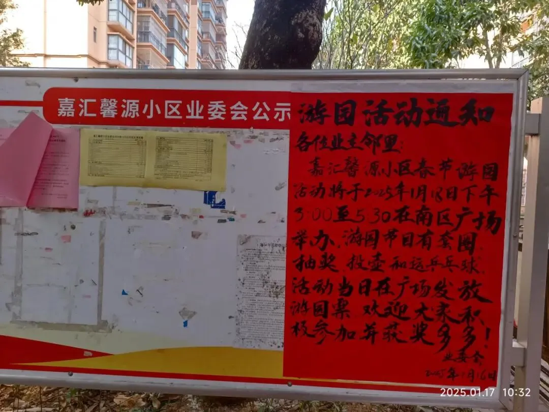 (十一)2025年1月17日,四个公示栏张贴《游园活动通知》,相关信息同步转发到14个业主微信群。