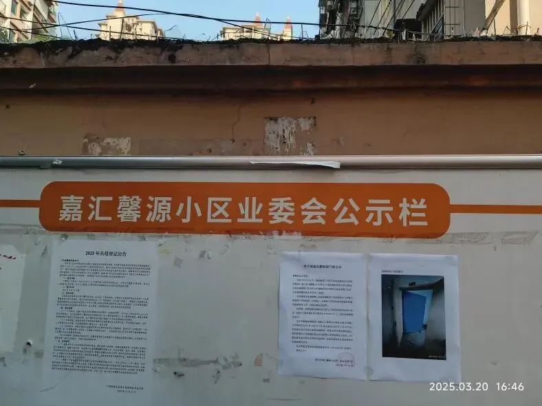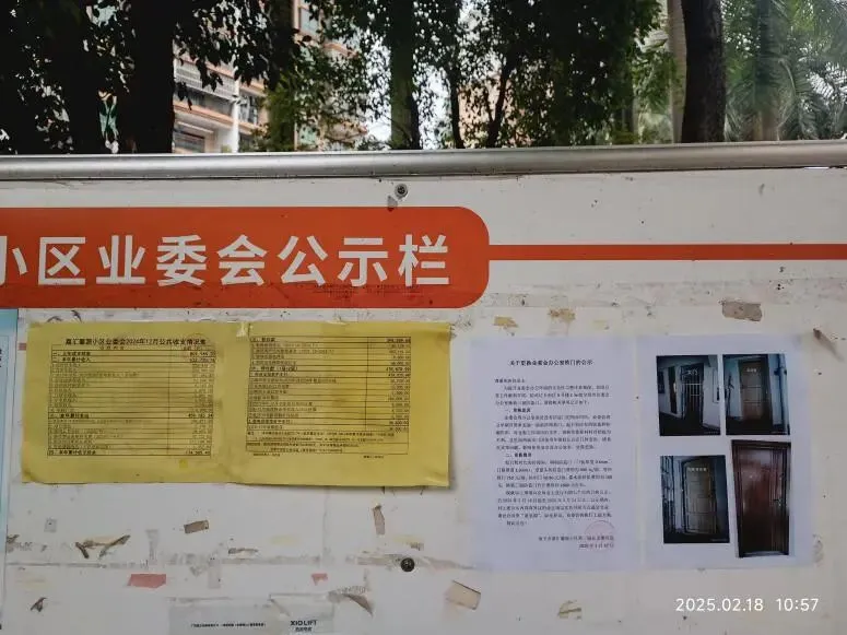 (十五)2025年2月18日,四个公示栏张贴《关于更换业委会办公室入门的公示》,相关信息同步转发到14个业主微信群。