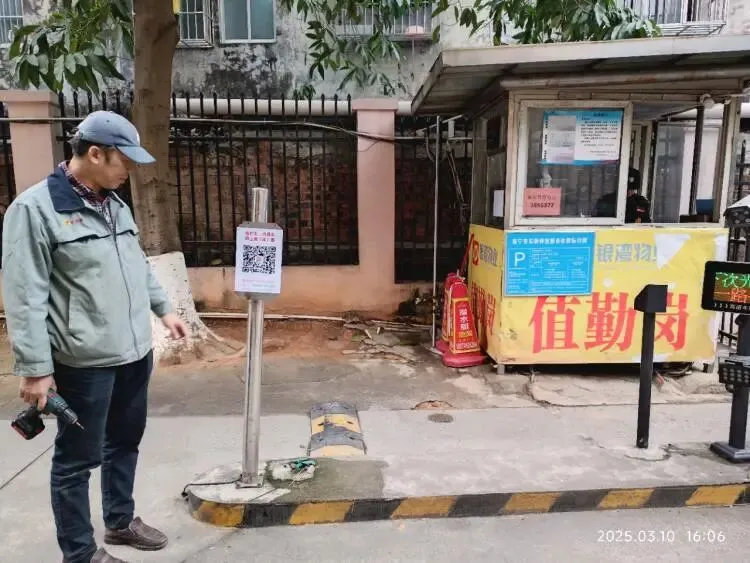 (十八)2025年3月10日,南区和北区外围出口停车收费“预付款二维码”由于雨淋热晒显得破旧,为方便扫码缴费,协助物业重新设置缴费牌。