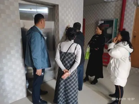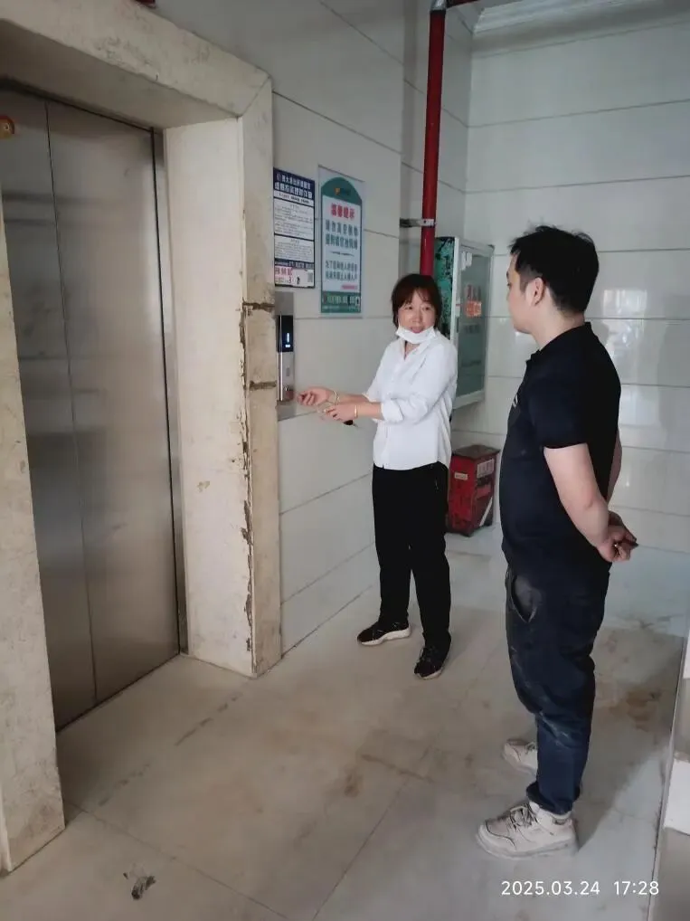 (二十三)2025年3月24日,配合物业与电梯安装负责人对西奥第二批和东芝第一批更新电梯进行走访,实地查看拆装过程中损坏的地面和墙面修补情况,重点查验紧急呼叫五方通话和禁止电动自行车乘梯识别功能。