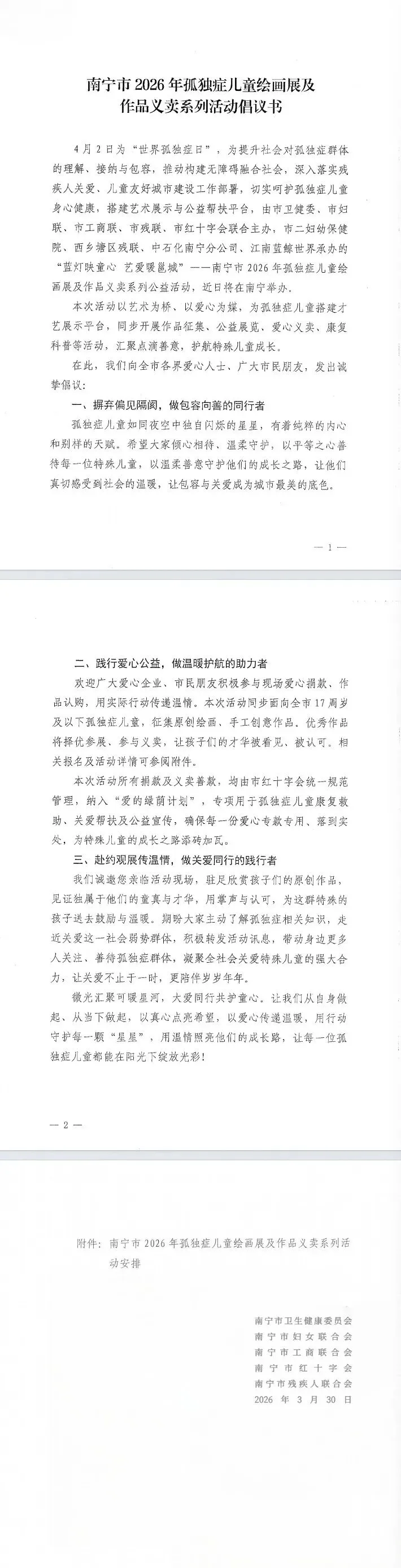 南宁市将举办2026年孤独症儿童绘画展及作品义卖系列活动
