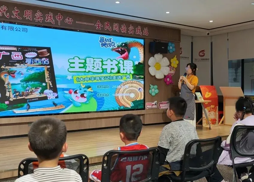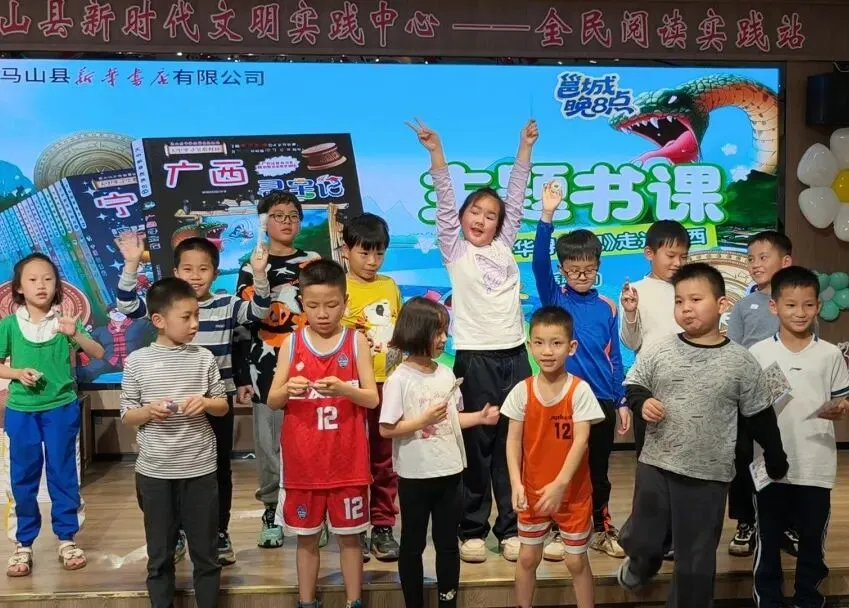 为丰富少年儿童的阅读生活,带领孩子们领略广西的人文地理与文化精髓,马山县新华书店趣味开启“寻宝广西·大美华夏”——《广西寻宝记》阅读分享会,孩子们在互动与探索中开启了一场别样的文化寻宝之旅。活动设置了“城市名片”“地图对对碰”“知识发电站”三大趣味环节。在“城市名片”抢答中,涠洲岛、桂林米粉等广西知名景点与特色美食轮番登场,小朋友们在抢答互动中加深对家乡文化的认知。“地图对对碰”考验团队协作,小读者们分组协作,将省份卡片精准贴到中国地图上,在挑战中巩固地理知识。最受欢迎的“知识发电站”1对1答题PK环节,孩子们在限定时间内上台快速答题,展现出丰富的阅读积累和知识储备。本次活动以趣味阅读,让孩子们在欢声笑语中领略广西自然与文化魅力,激发了对家乡的热爱与对课外阅读的兴趣。