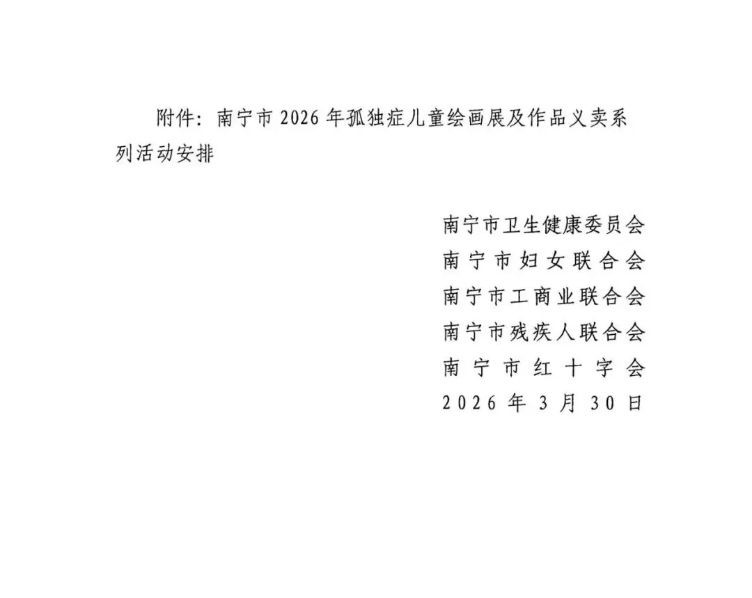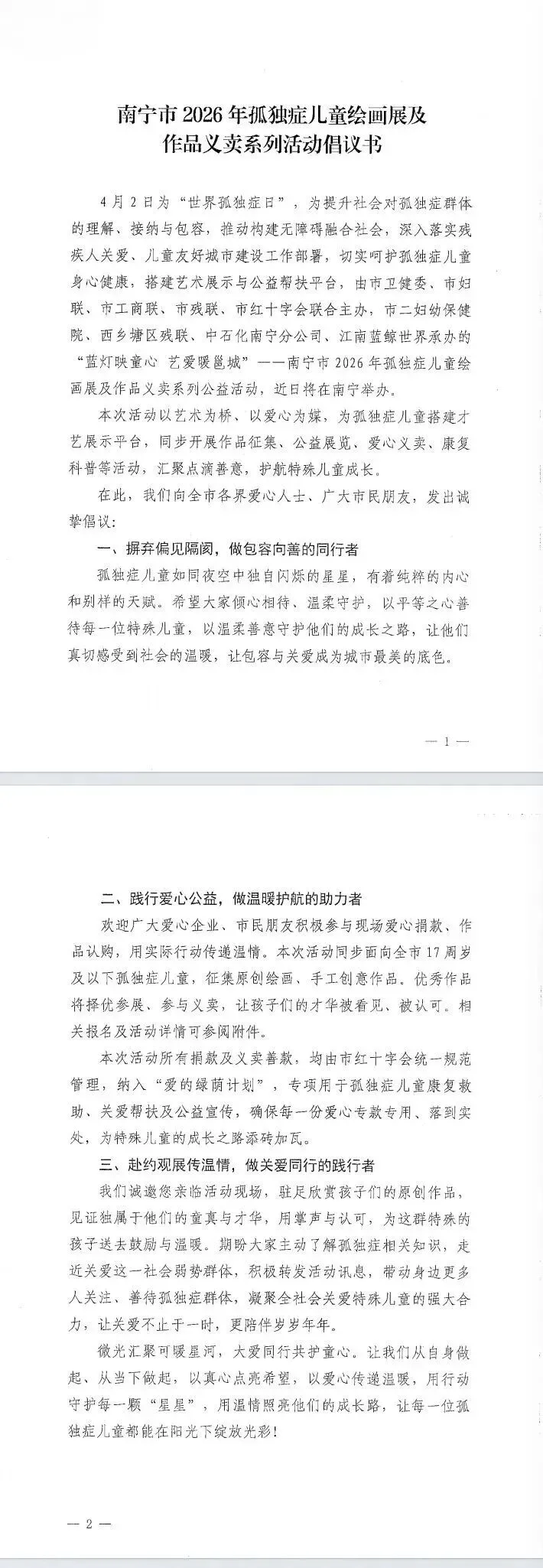 【倡议书】南宁市2026年孤独症儿童绘画展及作品义卖系列活动倡议书