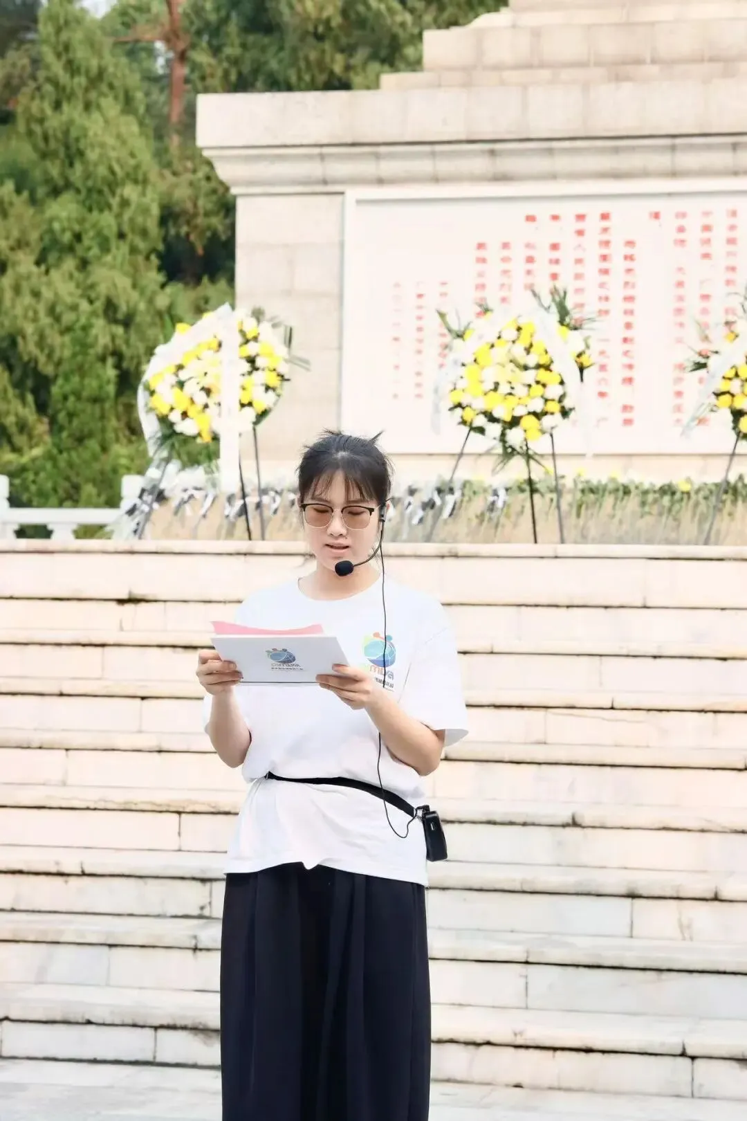 伴着悠扬的献花曲,全体人员依次有序敬献鲜花,并注目瞻仰纪念碑,以纯真的行动表达对先烈的崇高敬意。
