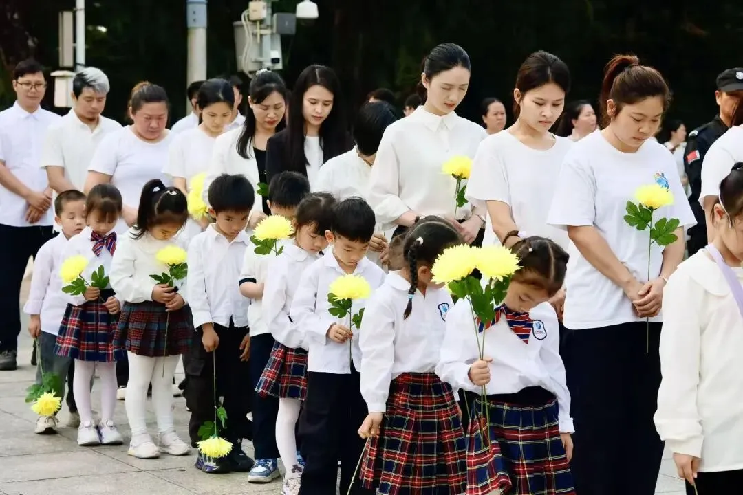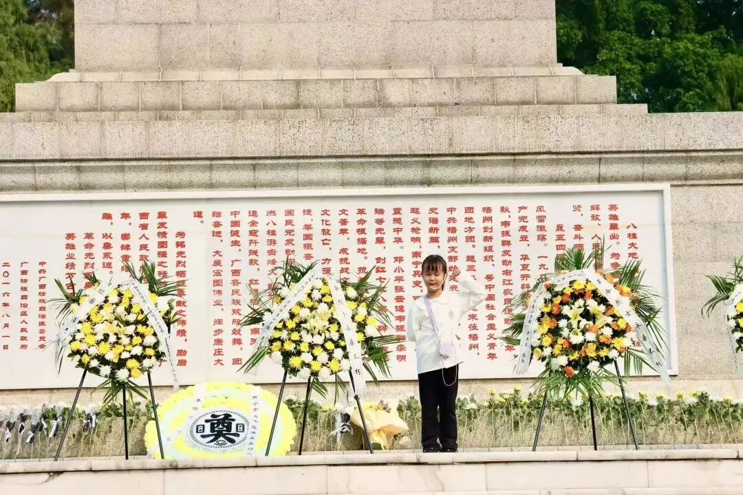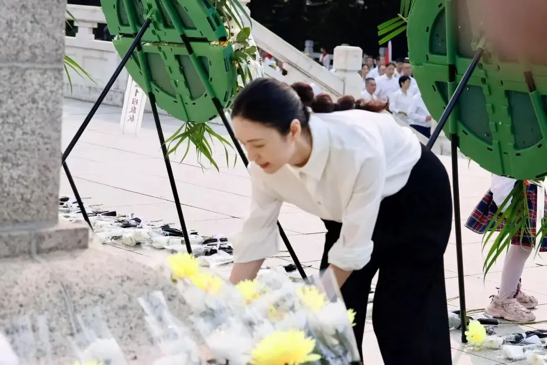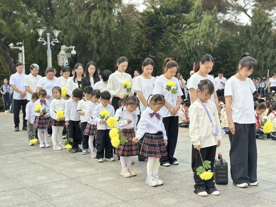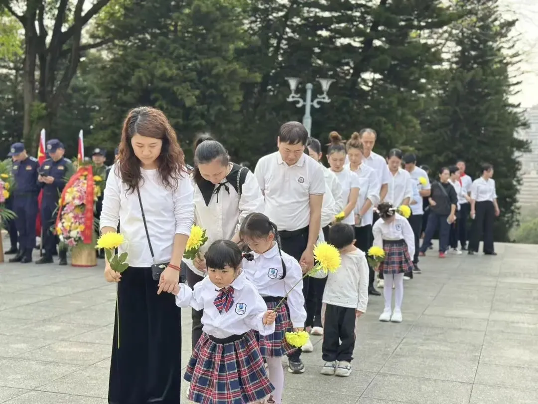 家长代表缓步上前,向烈士纪念碑敬献花篮、整理挽联,以庄重肃穆的仪式,寄托对革命先烈的深切哀思。