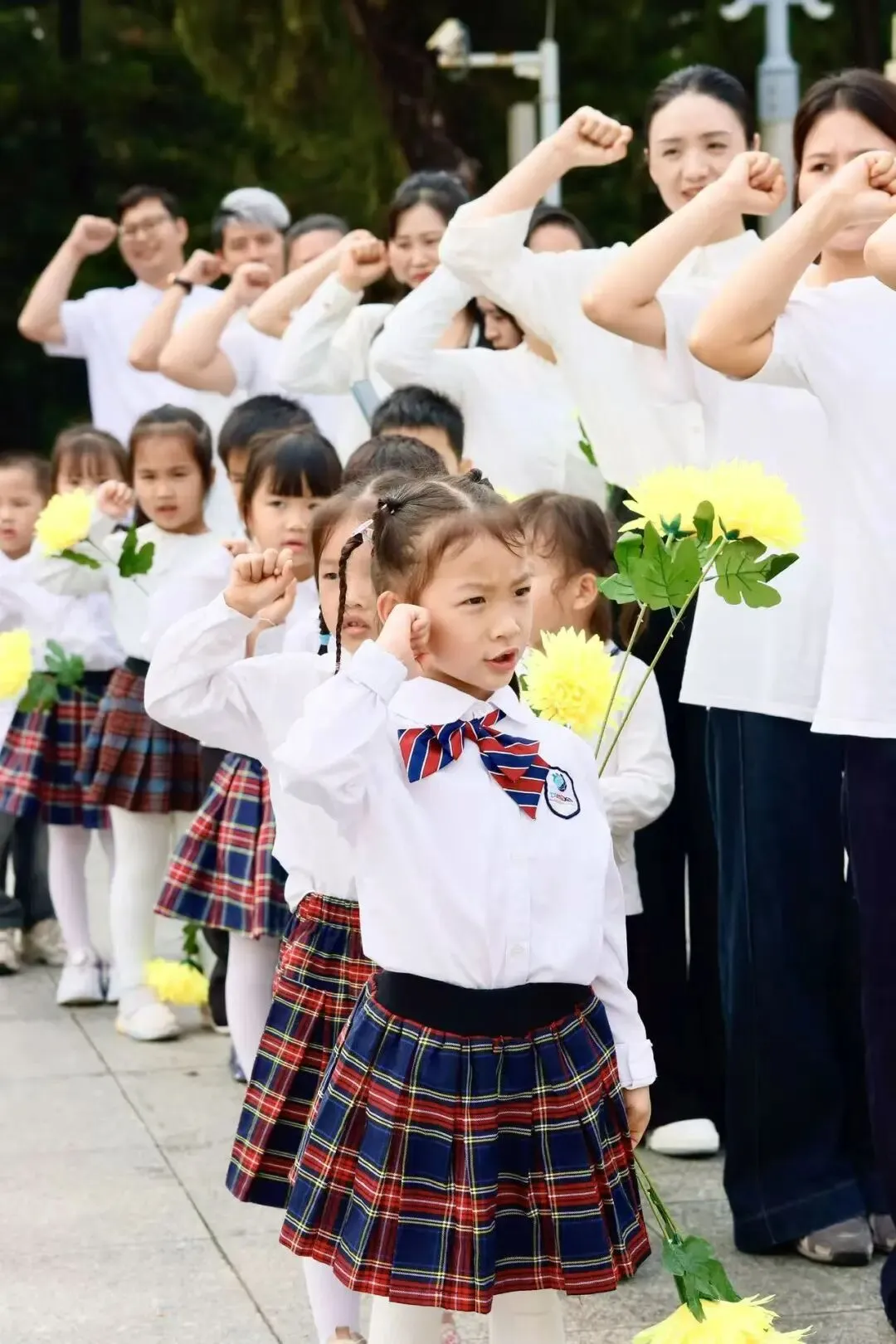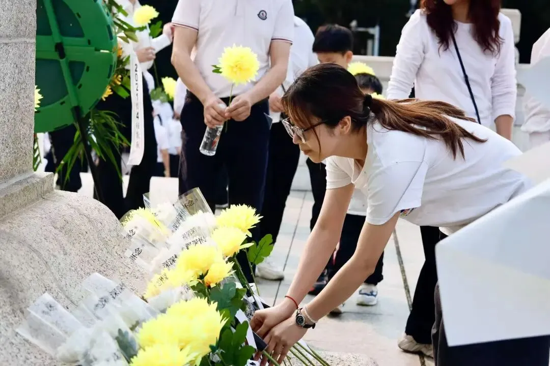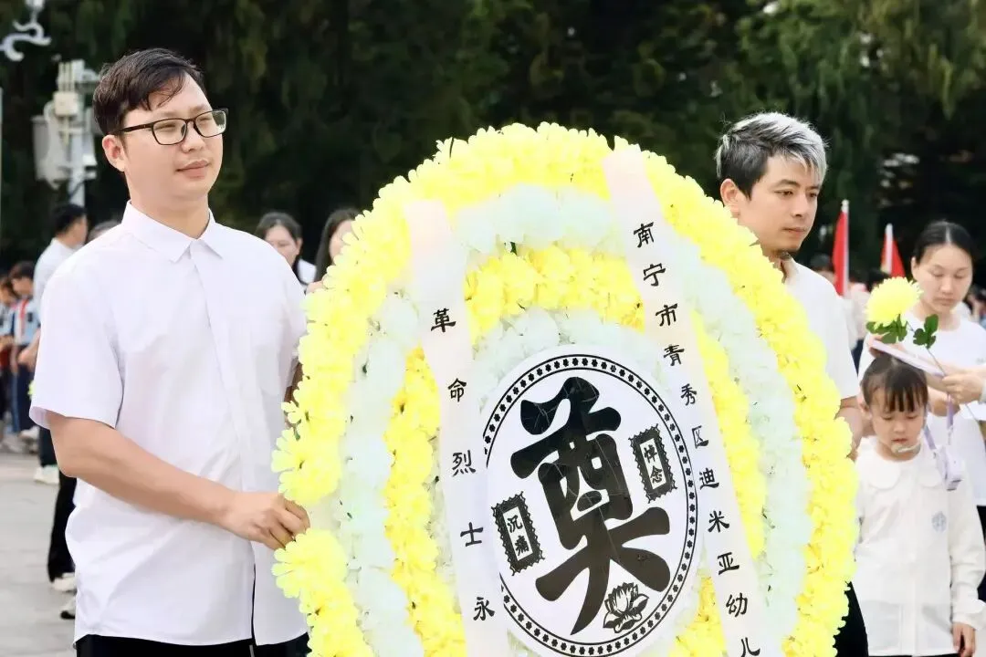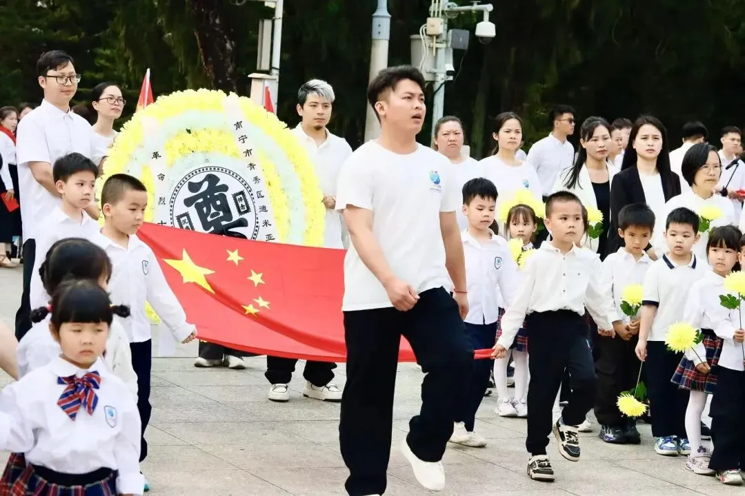 家长代表缓步上前,向烈士纪念碑敬献花篮、整理挽联,以庄重肃穆的仪式,寄托对革命先烈的深切哀思。