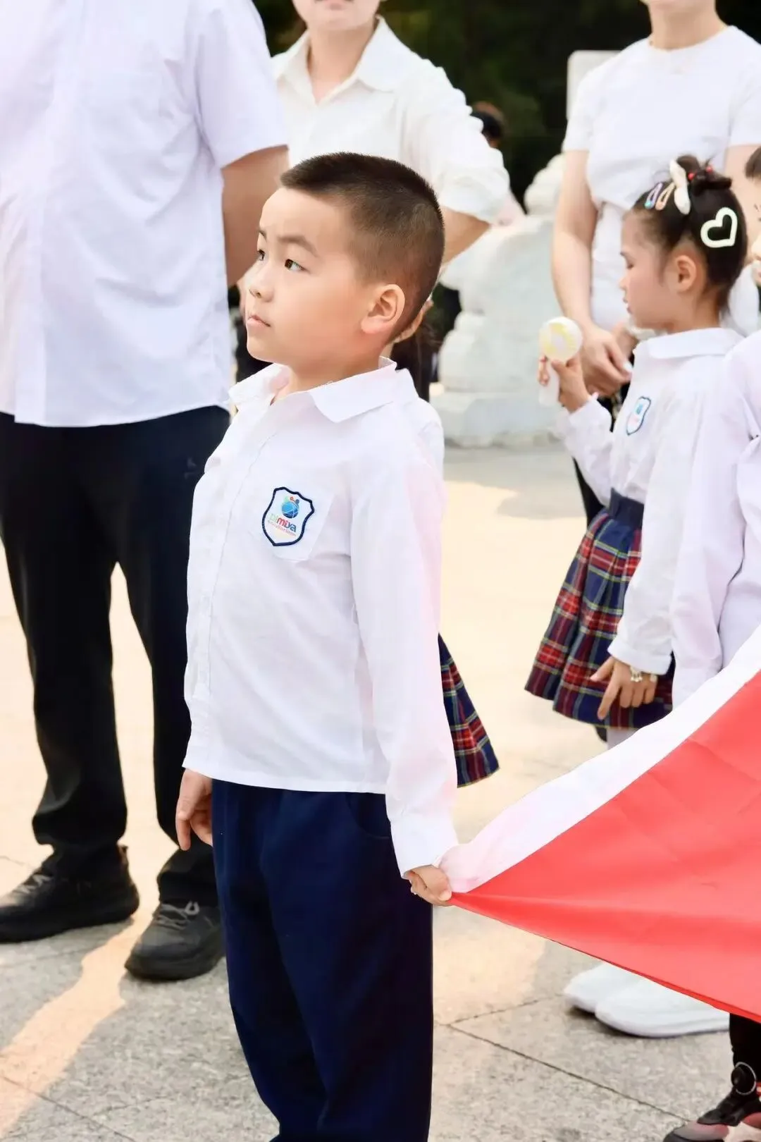 家长代表上台发言,向革命先烈致以崇高敬意,勉励孩子们铭记历史、传承红色精神,成长为有家国情怀的新时代好儿童。