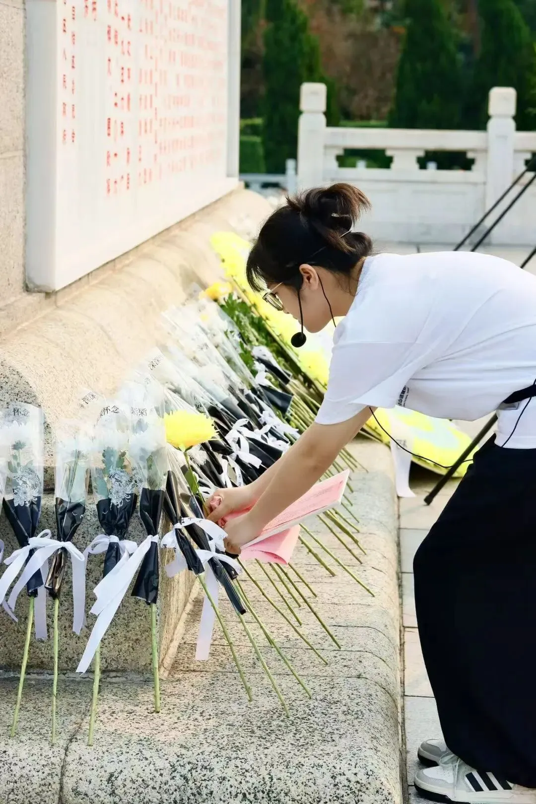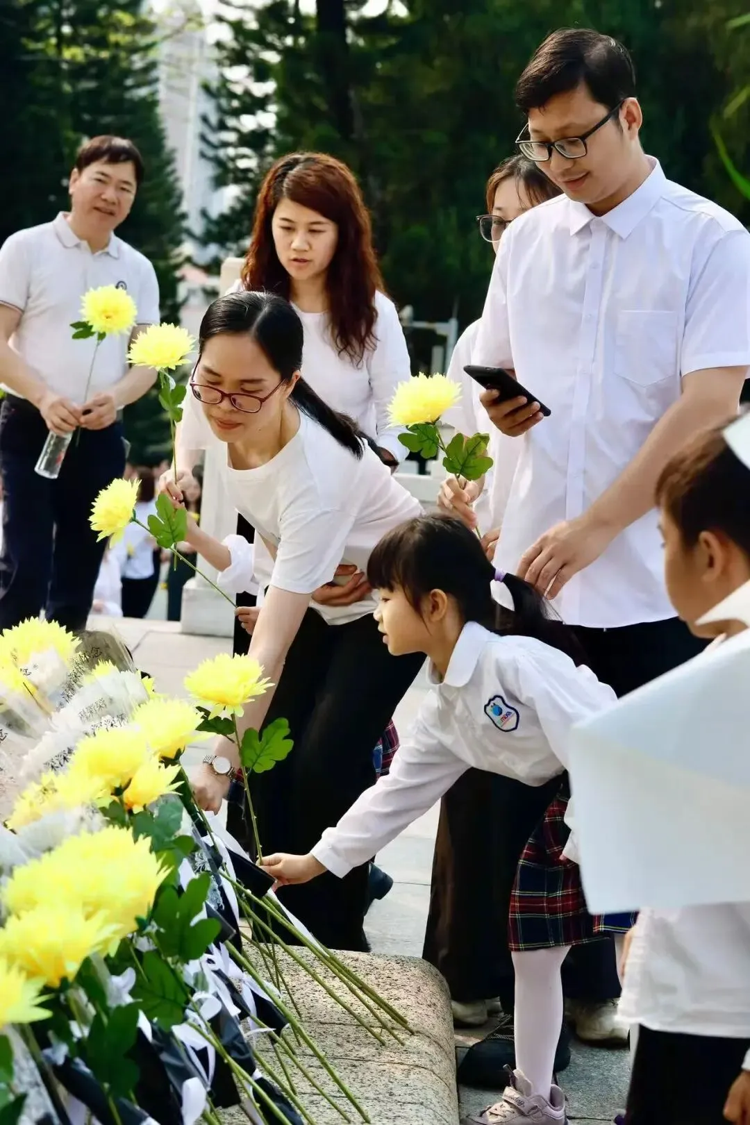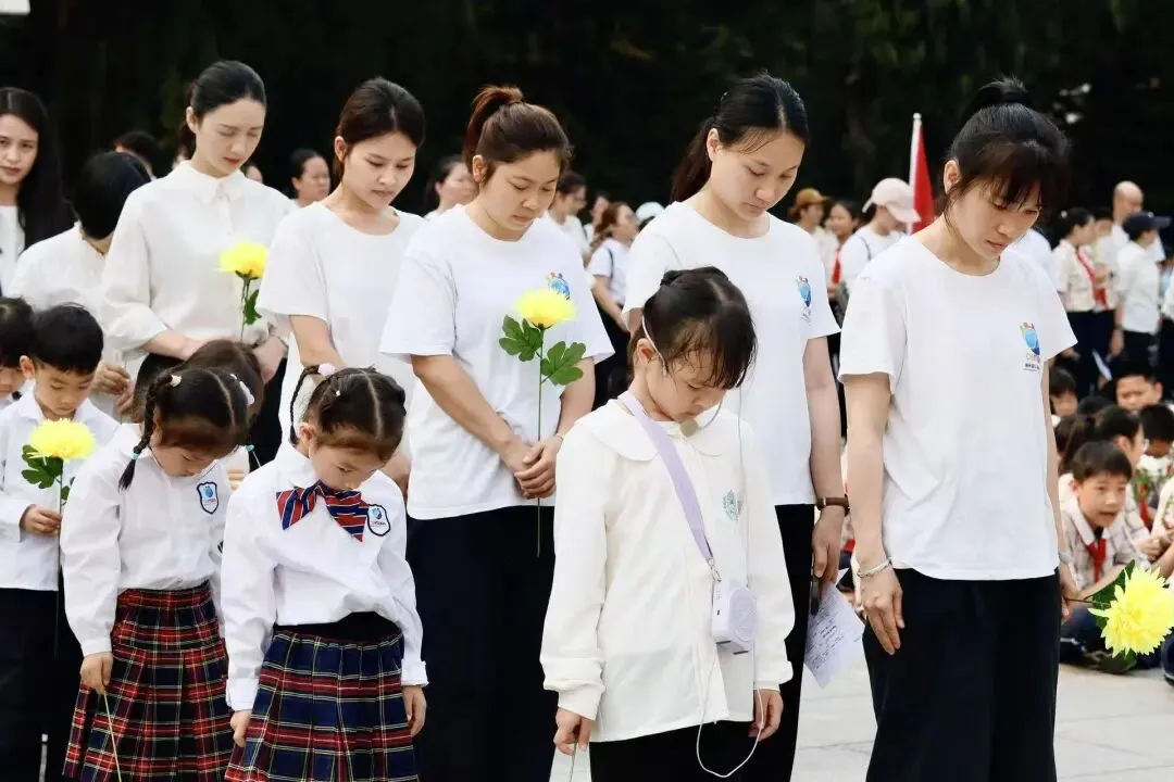 全体人员向革命烈士行三鞠躬礼,低头默哀,深切缅怀先烈的丰功伟绩。