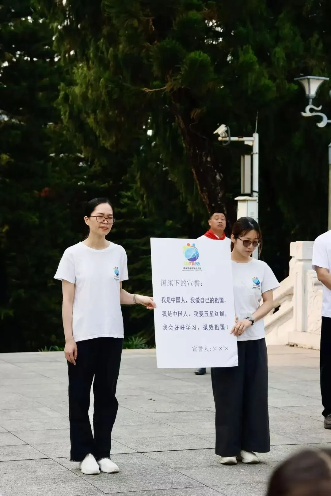 幼儿代表带领全体小朋友庄严宣誓,立下学习英雄精神、争做爱国好儿童的坚定承诺。