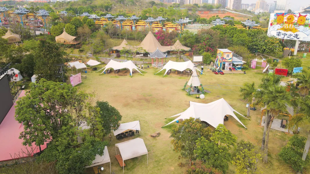 在五象新区,五象栖地、云朵朵营地、野行野宿五象营地、青芒露营错落分布。它们形成了城市休闲矩阵。