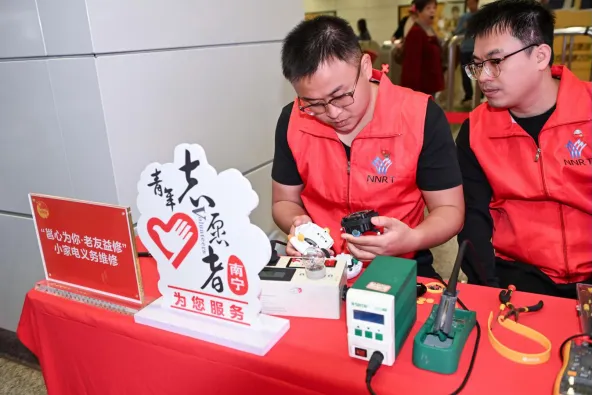 南宁轨道交通运营公司“学雷锋 做志愿 青春建功‘十五五’”志愿服务公益集市,在南宁地铁1号线朝阳广场站启幕。活动现场设置应急科普、文明引导、便民服务等特色专区,整合呈现多元化服务内容,实现便民服务“一站式”供给。志愿者充分发挥专业技术优势,各专业维修骨干常态化开展“老友益修”小家电维修公益服务,主动为市民排查电饭煲、电磁炉等家用小电器故障,耐心讲解使用与保养常识,解决市民生活“小麻烦”,传递志愿“大温暖”,拉近地铁与市民群众的距离。