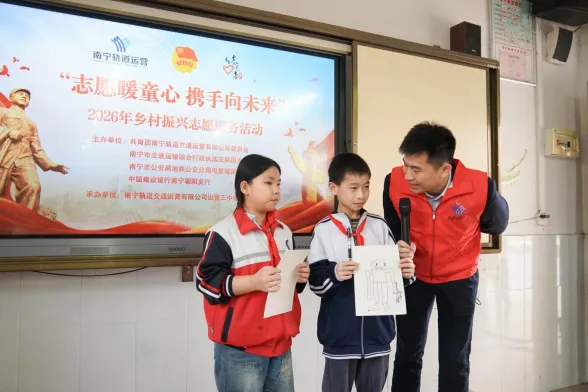 南宁轨道运营公司联动多方单位,赴上林县三里镇中心学校开展乡村振兴志愿服务,通过重温雷锋事迹、分享地铁服务案例、普及文明乘车知识等方式,引导少年儿童传承践行雷锋精神。创新开展地铁“云参观”,激发孩子们对轨道交通科技的探索兴趣。联合执法、公安、金融等单位开展水上安全实操、警用装备展示、金融反诈宣讲,重点讲解游戏充值、冒充熟人等乡村高发诈骗手段,引导孩子们争当“家庭反诈小卫士”,并赠送爱心书籍助力乡村少年成长。