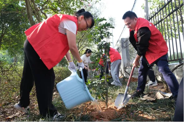 集团本部党支部联合机关团支部及共建单位,开展“党团同心植桂树 青春奋楫守廉心”党团共建植树主题活动,将植绿护绿与廉洁文化建设有机结合。南宁轨道交通建设集团、南宁轨道地产集团、南宁公交集团组织党员、团员青年志愿者深入南宁轨道交通6号线一期工程盘古车辆段等点位,合力义务栽植树苗百余株,为建设美丽宜居城市贡献力量。