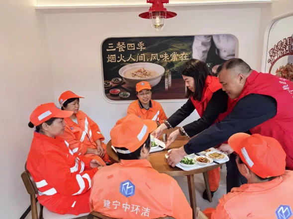 智慧餐饮公司党支部紧盯一线劳动者、困难群众需求,组织开展“爱心暖胃·真情暖心”学雷锋志愿活动,将营养均衡的爱心午餐送往青秀环卫爱心驿站、中环洁良庆项目部,并在轨道优厨(剧场公寓店)为环卫工人现场派餐。志愿者们与环卫工人亲切交流,倾听工作心声,传递组织关怀与敬意。