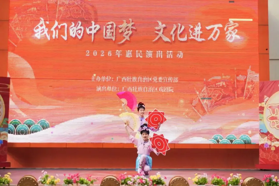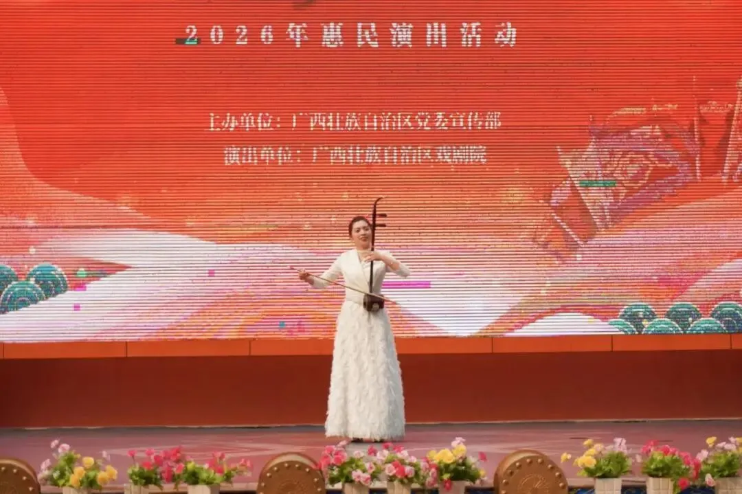 活动在热闹欢快的《彩调欢歌》中拉开帷幕。来自广西壮族自治区戏剧院彩调剧团的老师们身着艳丽戏服,踏着轻快的节奏载歌载舞,彩调独有的灵动俏皮瞬间点燃了现场氛围。紧接着,婉转悠扬的《紫竹调》与奔放豪迈的《赛马》两首经典民乐相继奏响,孩子们沉醉其中,在优美旋律中感受传统艺术的独特韵味。