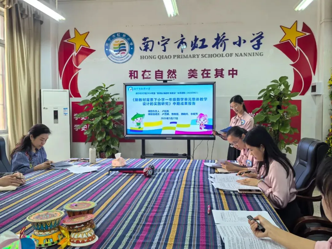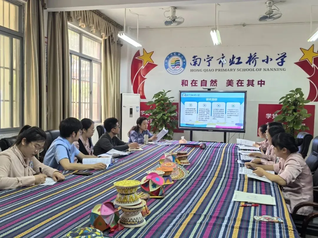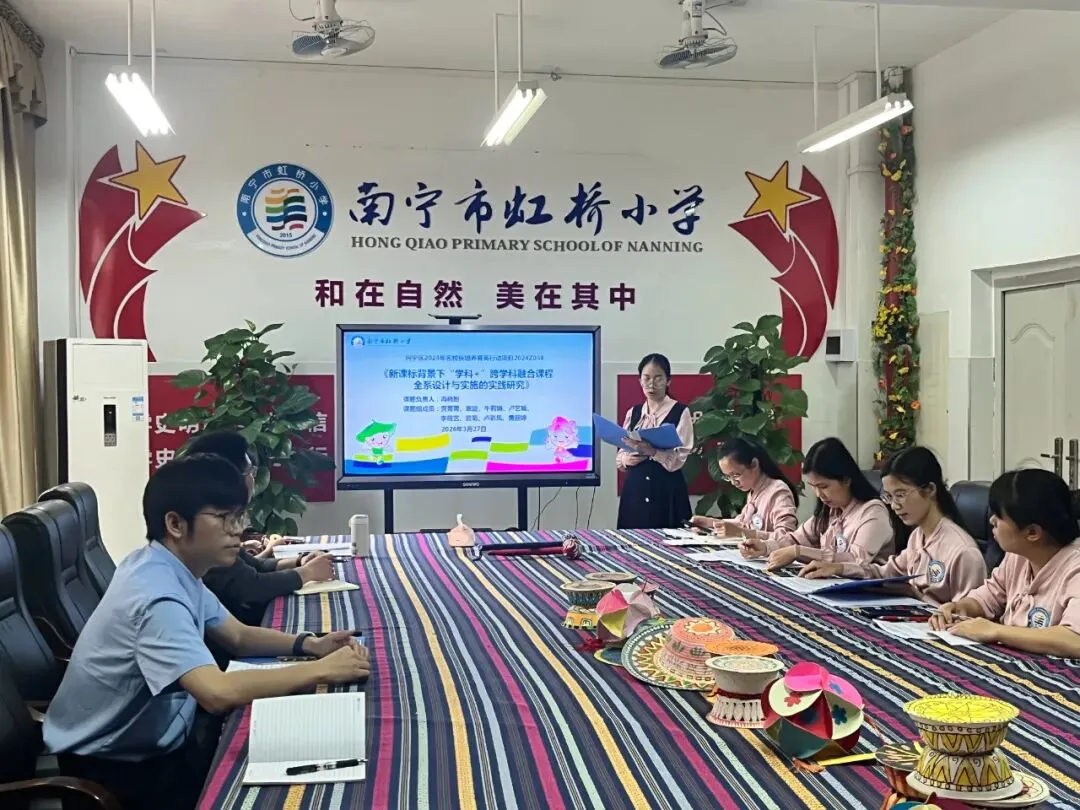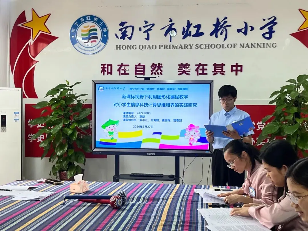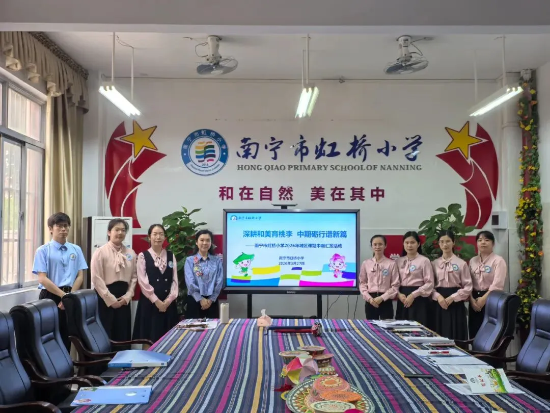 2026年3月27日下午,南宁市虹桥小学召开以“深耕和美育桃李 中期砺行谱新篇”为主题的课题中期汇报活动。本次活动以教育科研创新为核心导向,聚焦课题研究提质增效,助力教师专业能力提升,为学校教育高质量发展注入强劲科研动能。学校课题指导组及全体课题组成员齐聚一堂,共同研讨课题研究工作。