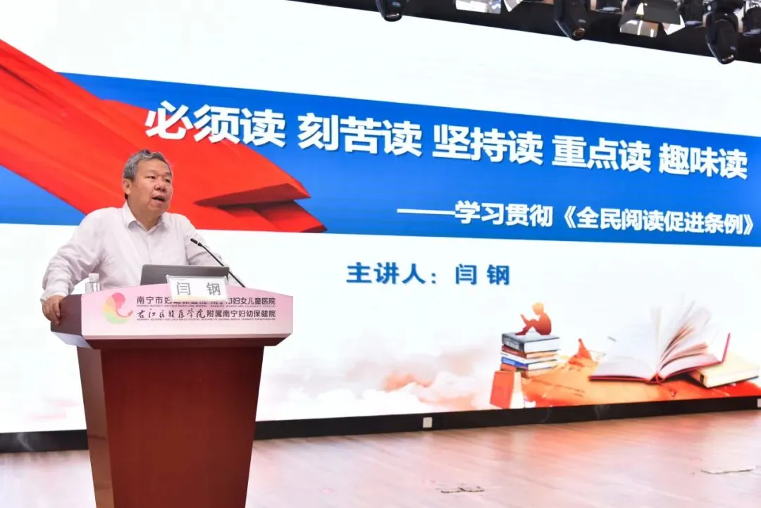闫钢书记以《必须读 刻苦读 坚持读 重点读 趣味读》为题,围绕《全民阅读促进条例》进行了深度解读,并结合妇幼保健行业特点,引据经典、旁征博引,深入阐释了阅读对提升人文素养、涵养职业精神的重要作用,为全院干部职工带来了一场内容丰富、启发性强的专题讲座。