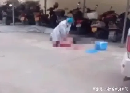 该女子坠楼后,当场倒在血泊中,医护人员对其抢救。