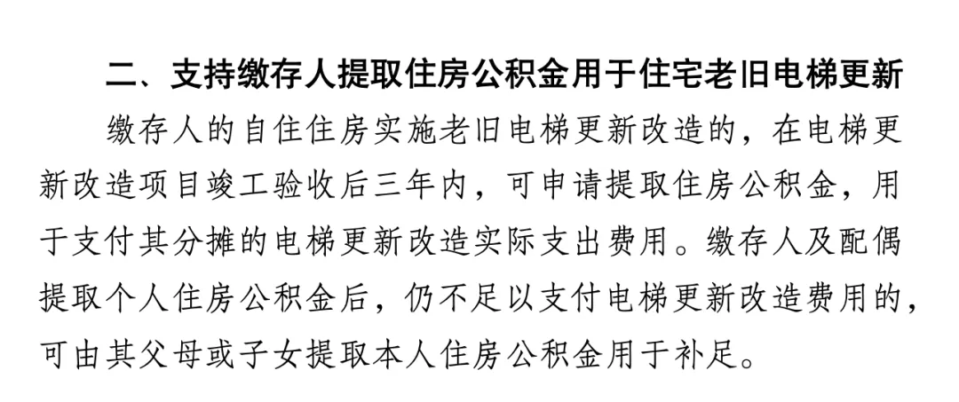 2、公积金提取政策优化方面,支持加装电梯、支付物业费等用途提取;