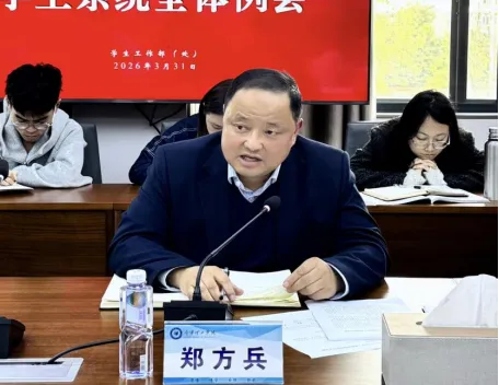 随后,学校校长助理郑方兵就学生管理教育服务工作作出强调与部署。他结合我校反诈教育实效、学生信息管理、网络安全、电信诈骗防控、学生公寓改造升级、学术诚信建设等当前重点工作与突出问题,明确要求全体学工人员把各项工作抓细抓实,并提出三点核心要求,一是要把教育落到实处,严把人员、时间、内容、效果四关,创新个性化精准引导,用身边案例强化警示作用,切实提升教育质效;二是要把管理落到实处,第一时间精准掌握学生动态,主动了解不同阶段学生需求与困难,重点保障实习学生安全,强化沟通协调、立足学生立场解决实际问题;三是要把制度落到实处,严格执行各项制度纪律,以制度落地落实防范风险、压实管理责任,及时收集反馈学生意见建议,全力提升学生管理服务水平与学生满意度。