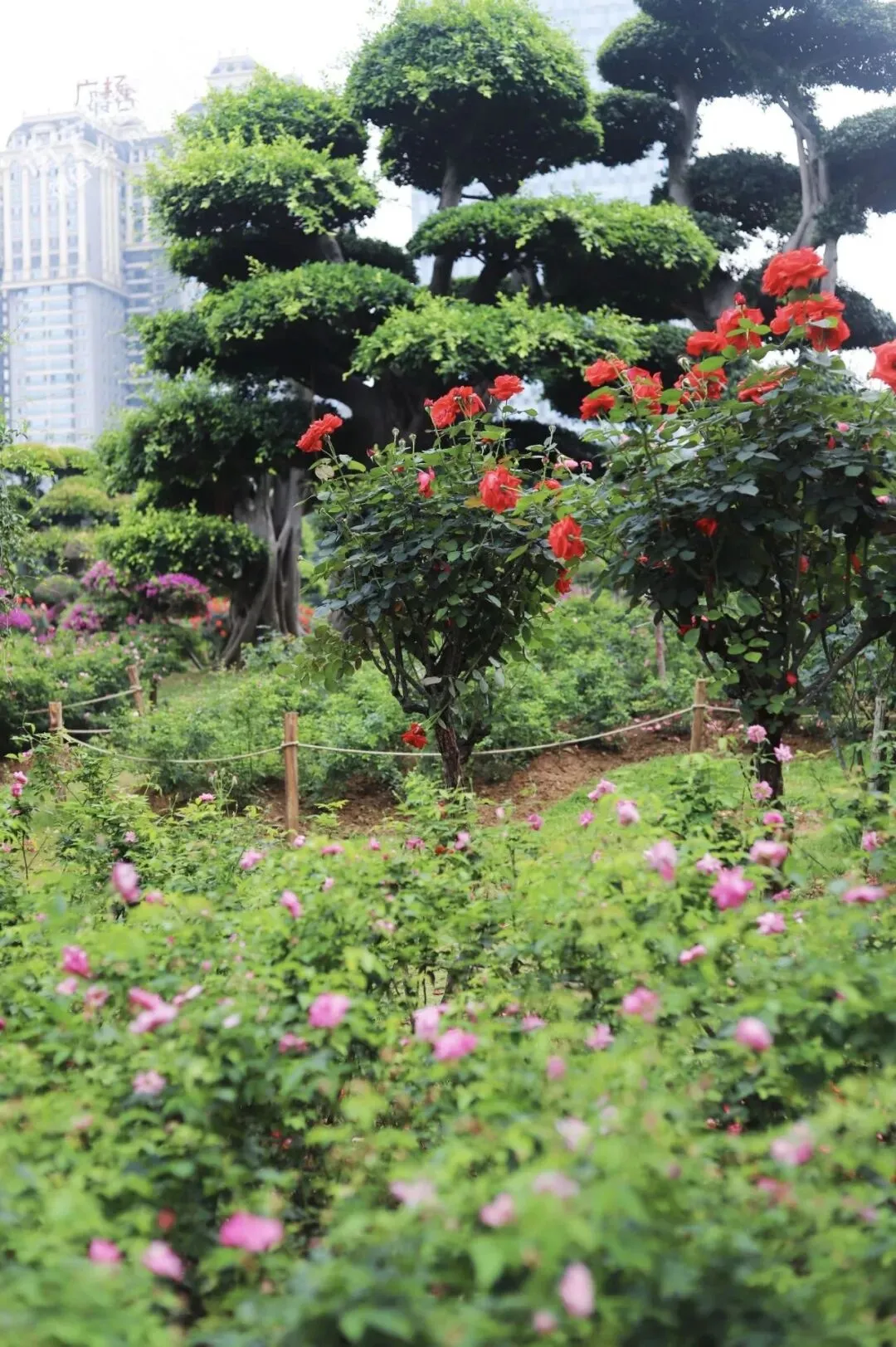 若你厌倦了商圈的喧嚣,想找一处能慢下来、被自然治愈的角落,无需走远,就在市区,一片绚烂的月季花海已经开好了!不必刻意寻觅,不必提前规划,只需偶然踏入这片绿意盎然的天地,便会被那热烈而明媚的色彩强行治愈。