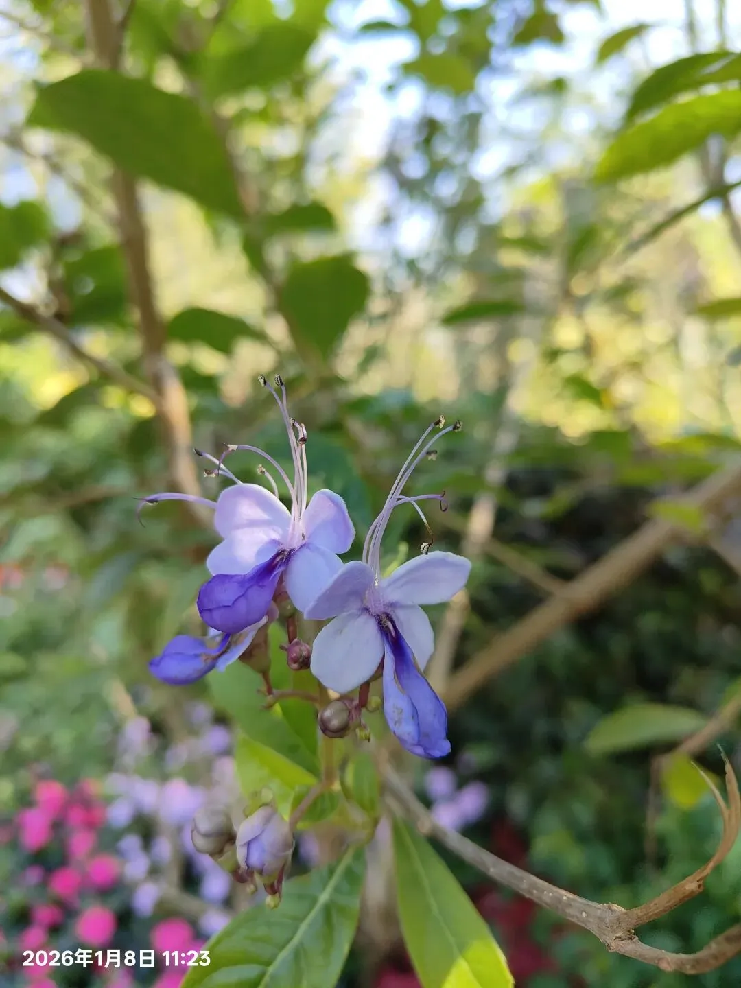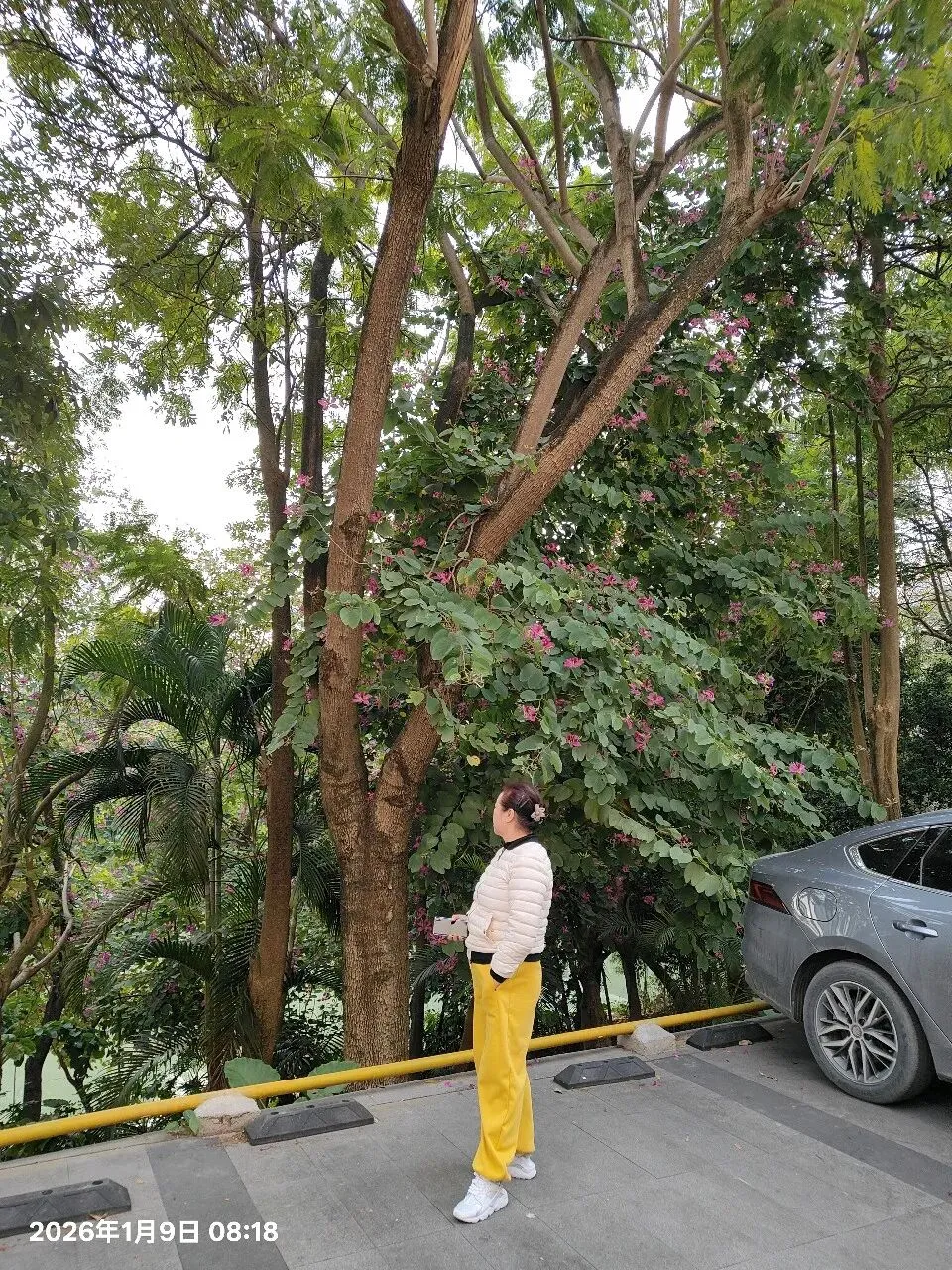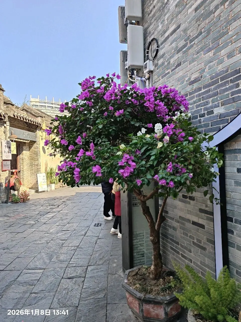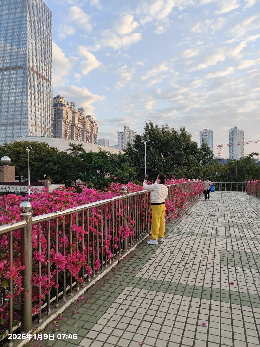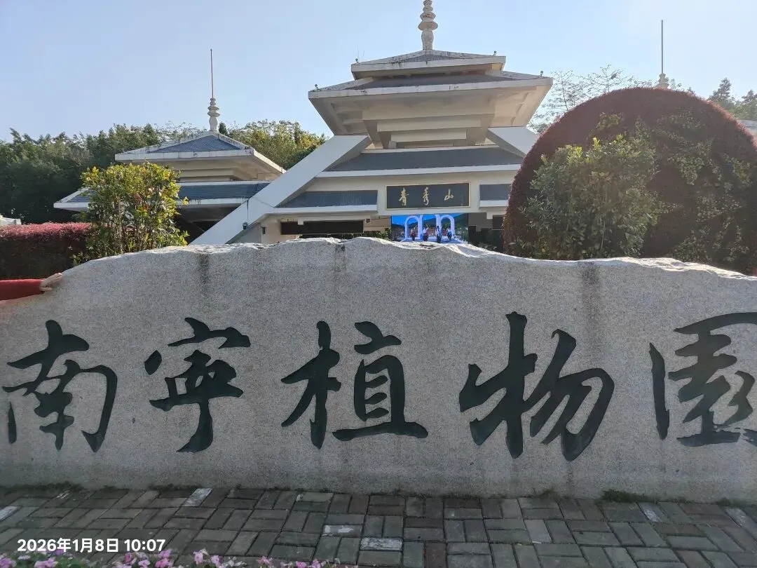 青秀山是南宁唯一的5A风景区,而且近邻市区,私下认为是到南宁游玩的必打卡之地。匆匆吃过早饭(略过150字),步行加地铁,直达青秀山风景区西门。从西门进入,是南宁植物园的主园区。坐在观光车上一路深入,沿途都是我等北方佬不知名的亚热带花草树木,芭蕉铁树、郁郁葱葱,异乡氛围感瞬间浓郁起来。常年生活在东北极寒之地,隆冬时节绿色树木都难得一见,如何能抵抗这百花盛放的吸引?加上我们南宁日程安排本就很短,所以果断放弃了攻略上介绍的一些青秀山必游景点,决定此行以赏花为主,来一场走马观花之旅。青秀山风光秀丽,规模不小,仅是花海部分就让你有刘姥姥进大观园之感,以桂花、兰花、风铃花、三角梅等打造了风格鲜明的各色主题园区,还有以莫奈故居仿建的莫奈花园等点缀其间,各园区阡陌相通又觉山重水复,如入仙界迷踪,却又不时柳暗花明,令人陶醉花间。最震撼的当属蜿蜒14.5公里的三角梅花道,用数万盆怒放的三角梅打造出了曲折回廊又仿佛层叠梯田式的红色海洋,巨大的白色风车花塔高入云端。虽然是旅游淡季,花海间、小径上,依然游人如织,吴音粤语、欢歌轻笑,似远还近,如梦如幻。徜徉花海,花色映红了脸庞,花意弥漫了心田,不是春光、胜似春光,刹那间灵魂出窍,有种人生似梦非真的感觉。在路旁高大的木棉树和洋紫荆的导引下,不知怎么前行就步入了莫奈花园,仿佛刚在梦中游,又入画里来。虽然已是冬季,花园池塘水面上依然满是浮萍,大小水盆里还点缀着稀疏的苏皖那睡莲,朱槿花、三角梅还有红铁树等不知名的植物间或生在小径两边,红花、绿植色彩交映,拱桥、篱笆错落交织,在午间微微朦胧的日光里依稀勾勒出油画般的光影画卷。不真实的感觉再次强烈,不知是在梦中还是画中?不知身处中土还是异国他乡?