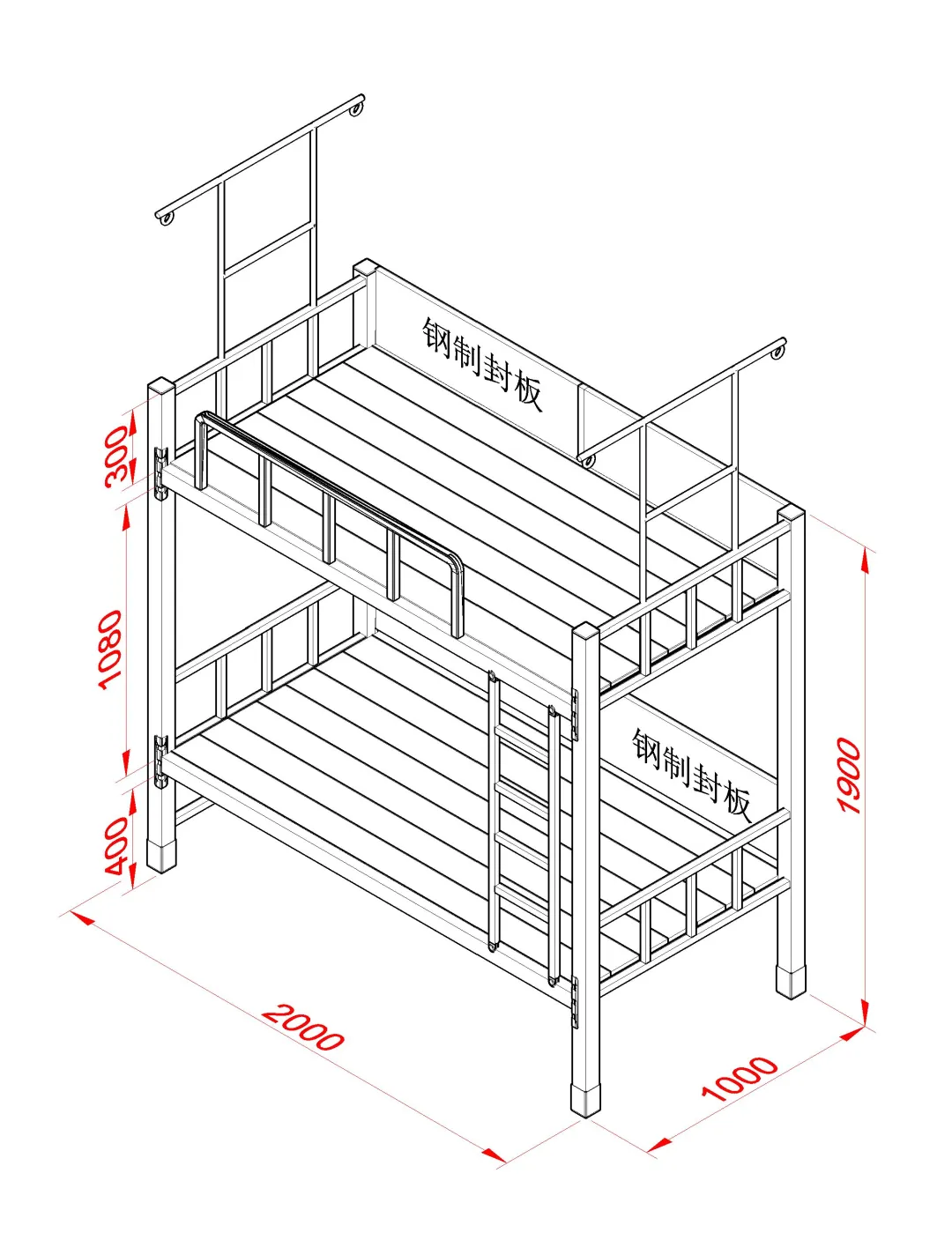 10. 上下床架靠墙面各封300mm高板材一级冷轧钢板,板材厚度为0.8mm。