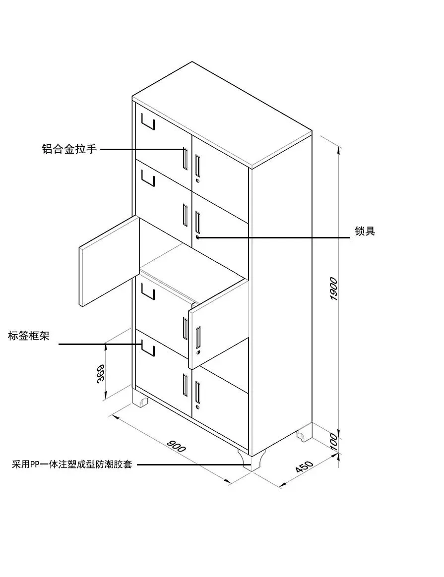 1.板材一级冷轧钢板,门板、侧板、腰板板材厚度为0.8mm,其他部位为0.6mm;